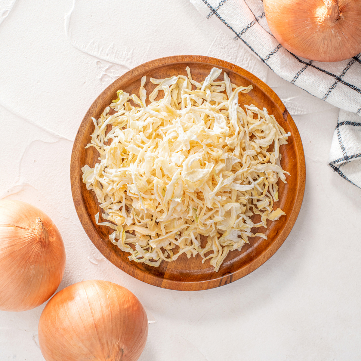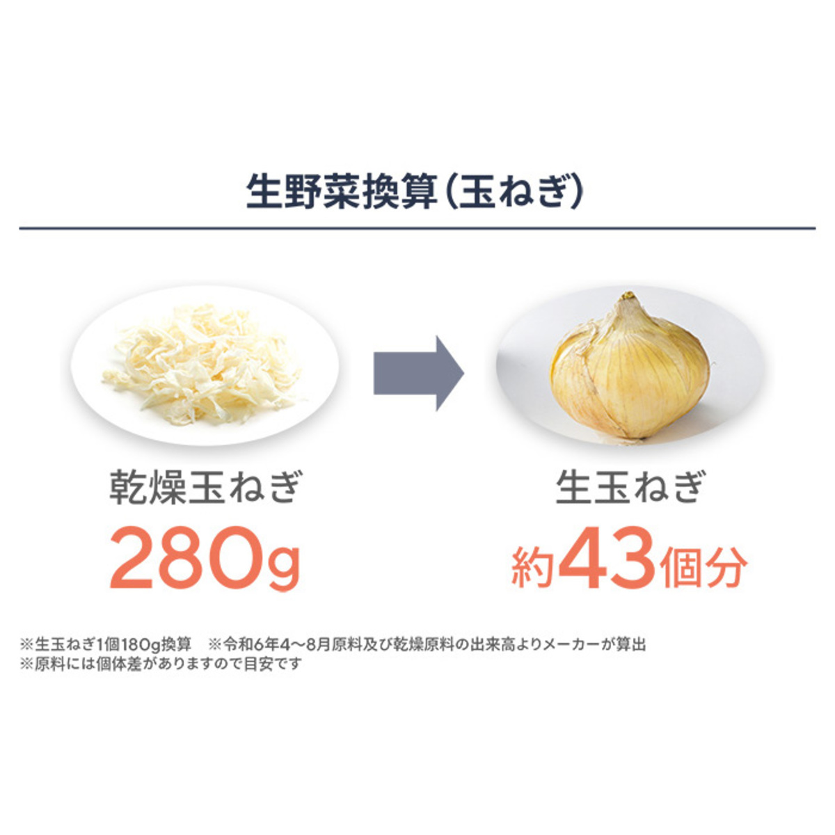 熊本県産の玉ねぎを使用。水やお湯で戻すとシャキシャキ食感を楽しめます。一度乾燥することで辛みが抑えられ、甘みや旨みをしっかり感じます