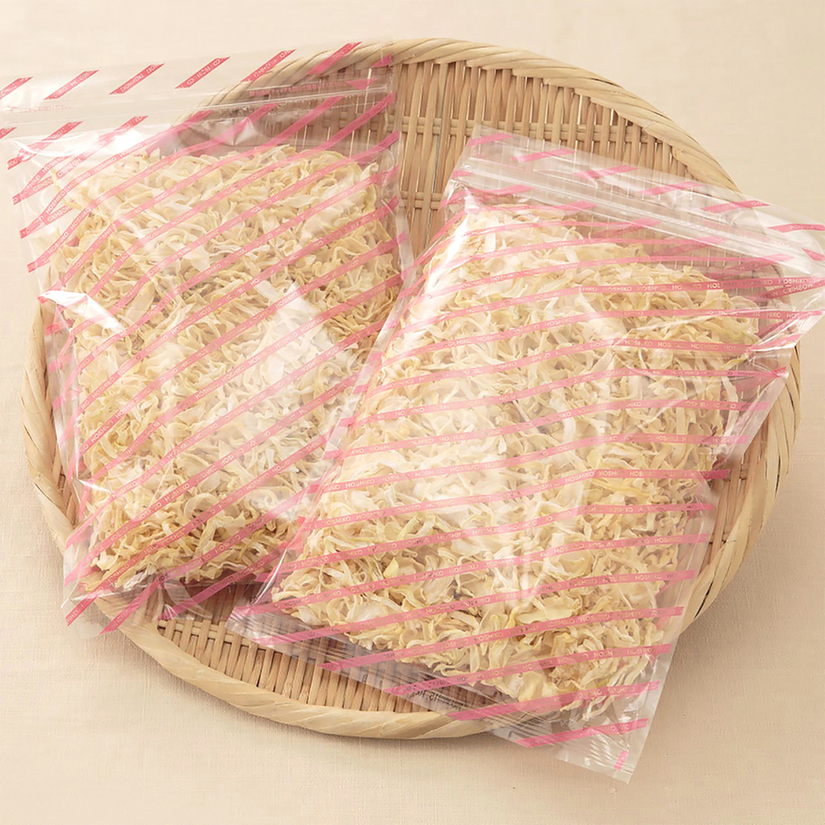 常温保存可能な乾燥野菜です。水に戻して使ったり、そのまま使ったりと、面倒な洗浄や皮むきが不要で、生ごみも少なく常備野菜としてもおすすめです