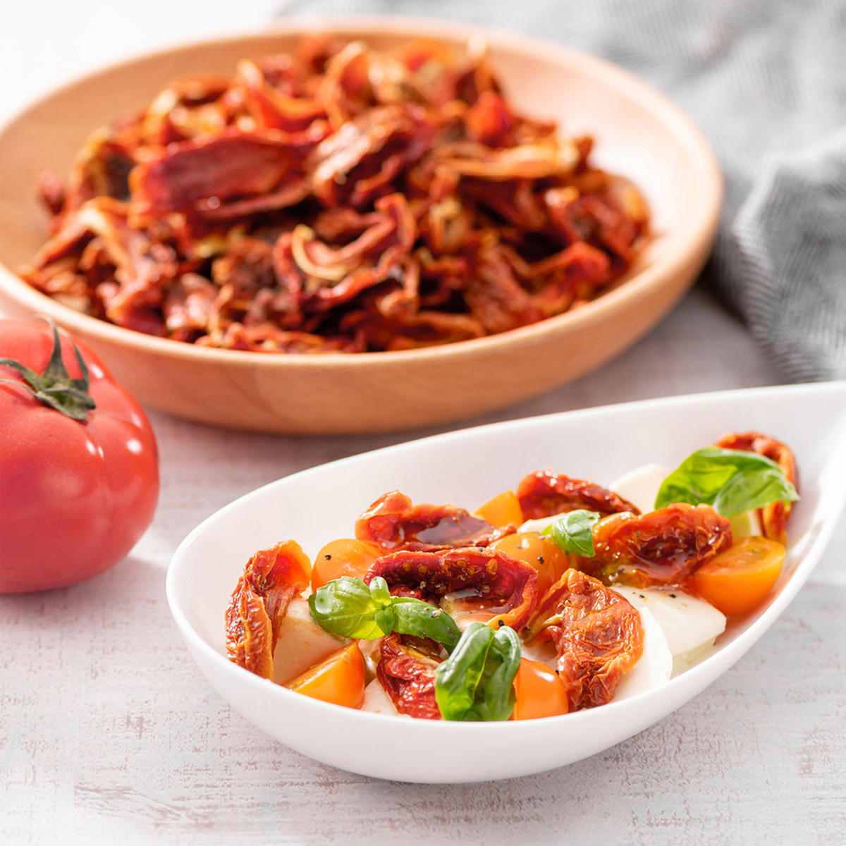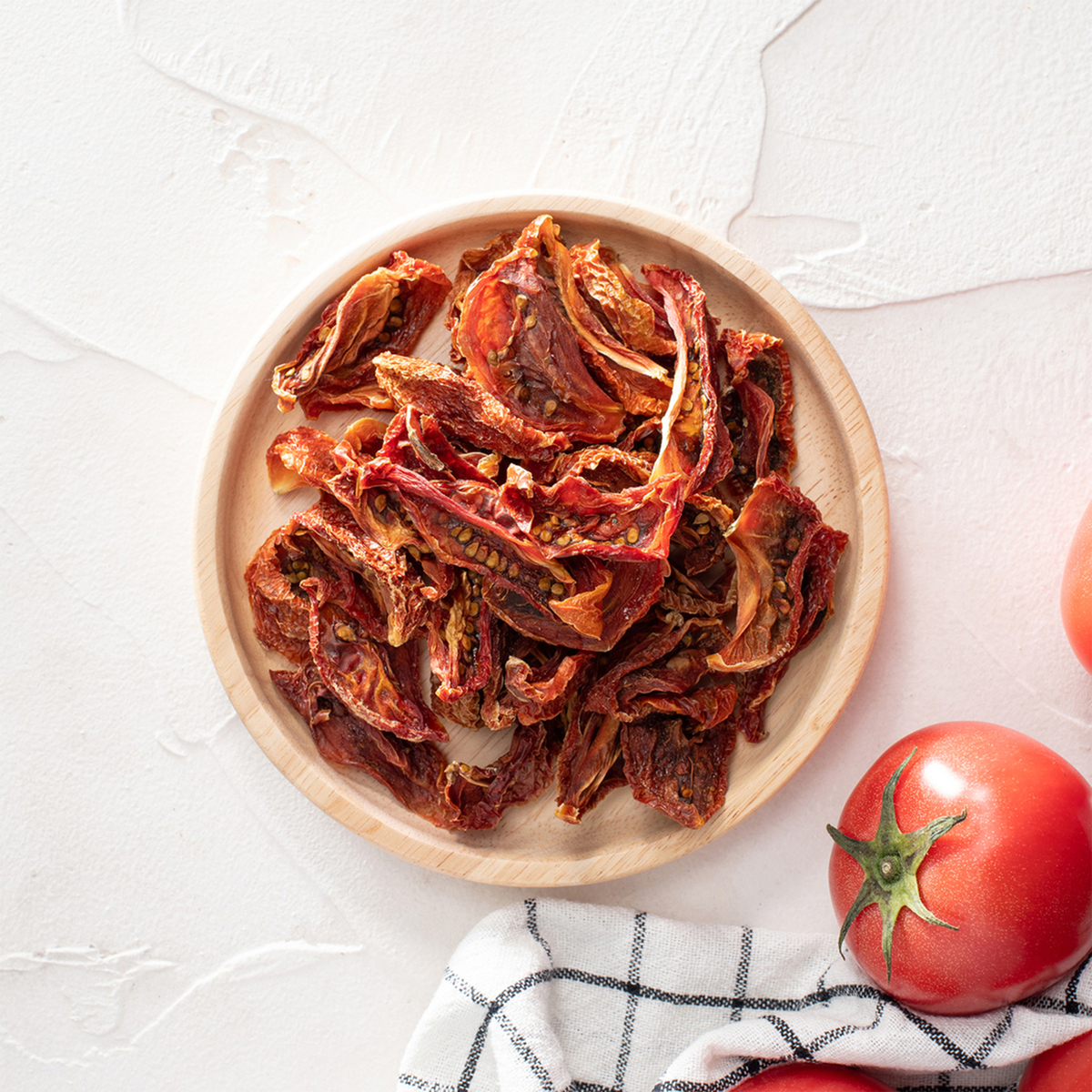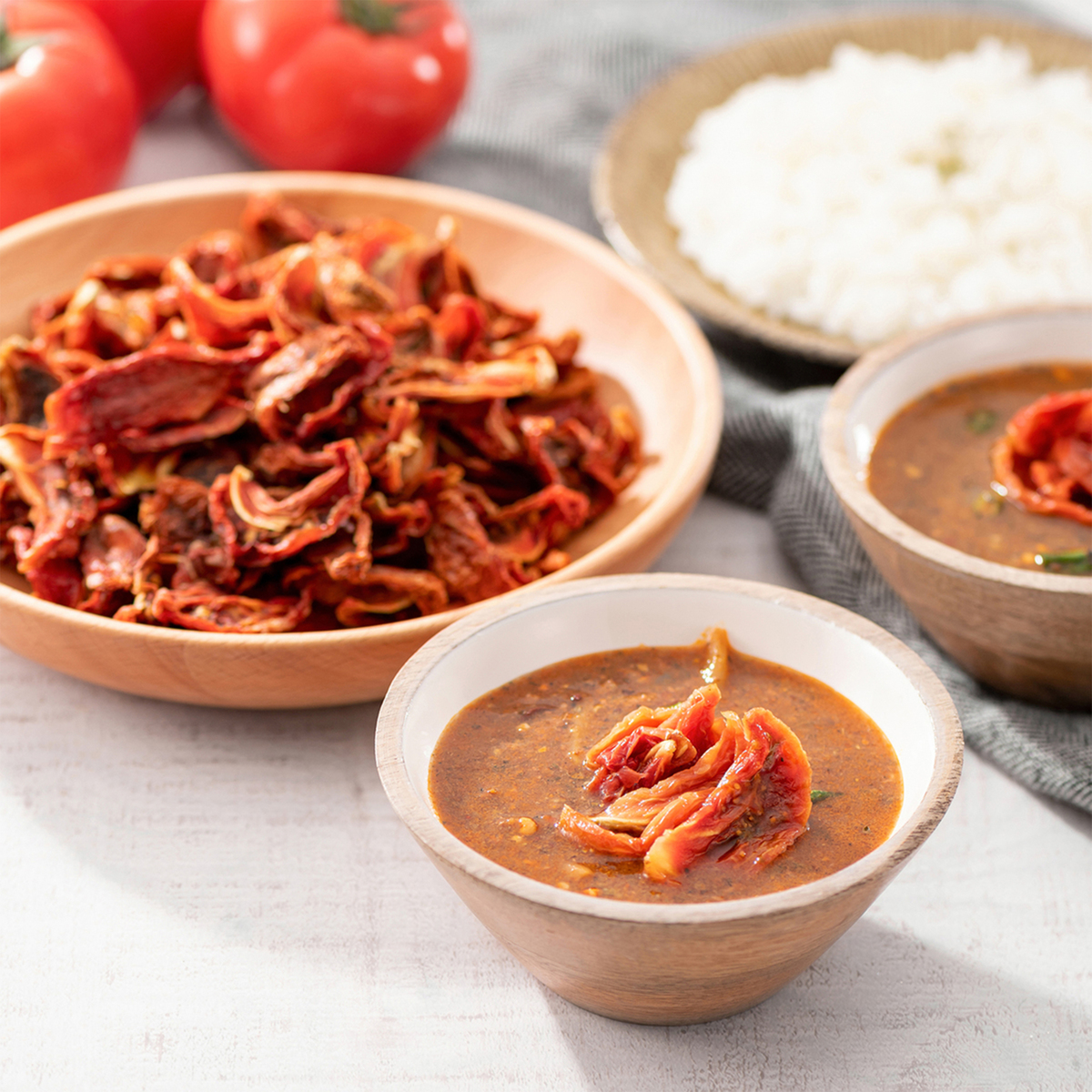 熊本県産のはちべえトマトを使用。水やお湯で戻すとトマトのジューシーな食感と酸味を楽しめます