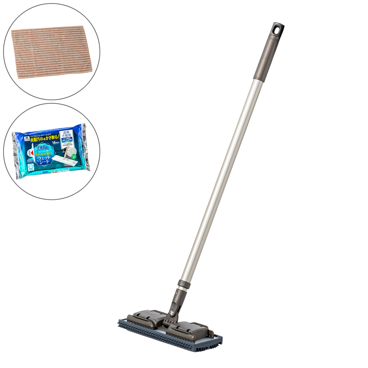 抗菌防臭加工が施された付属クロスは、両面使用可能。付属クロスを装着したうえで、側面ブラシを使って窓のサッシや室内の溝の掃除もできます。また、各社市販シート(30×20cm)や、お手持ちのぞうきん、古いタオルもお使いいただけます