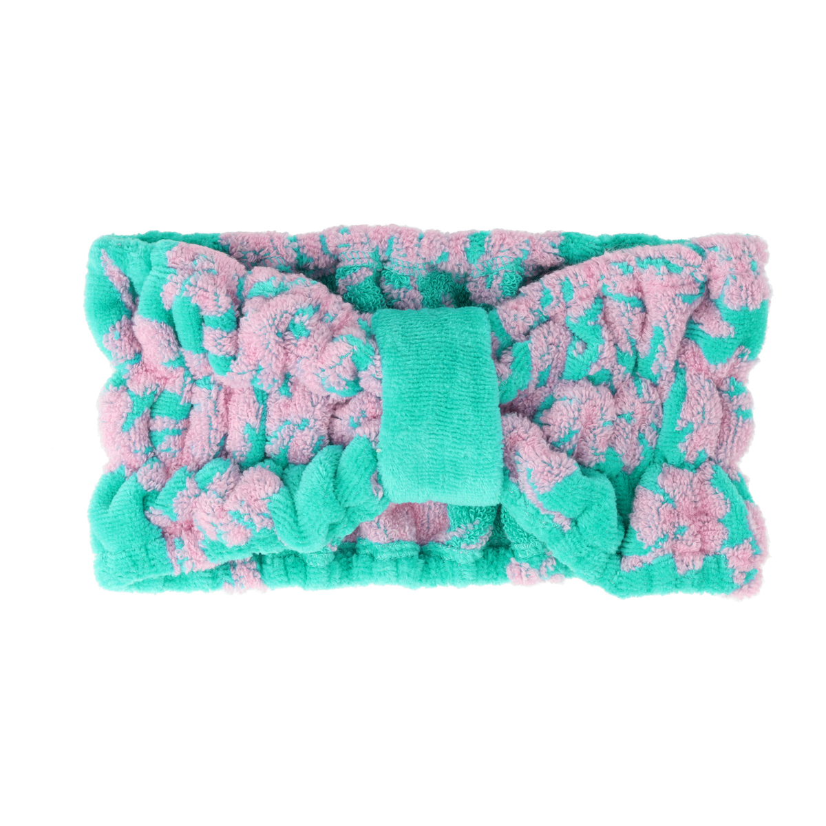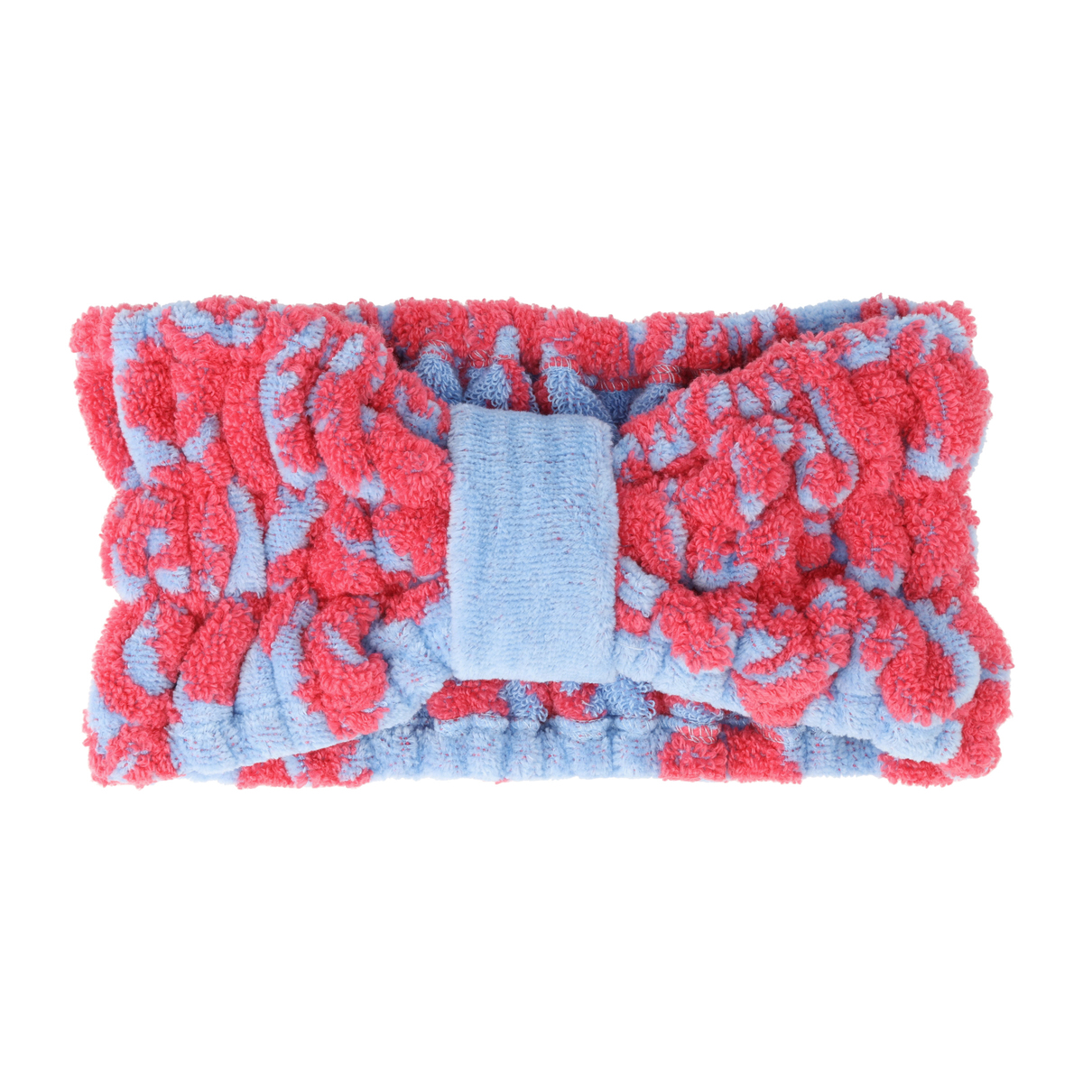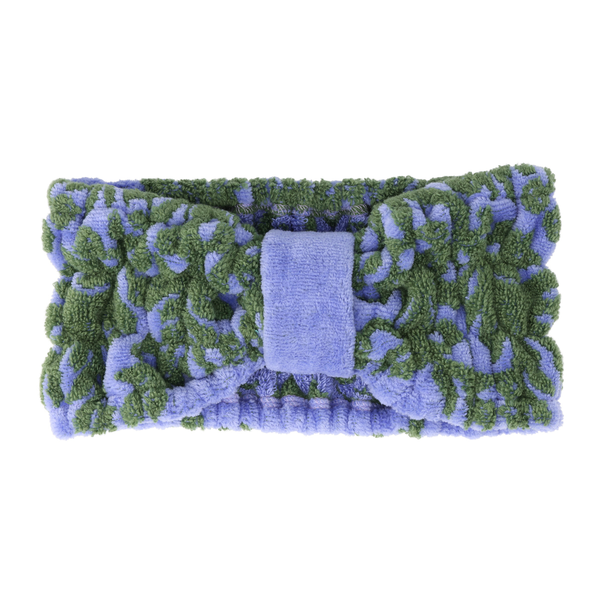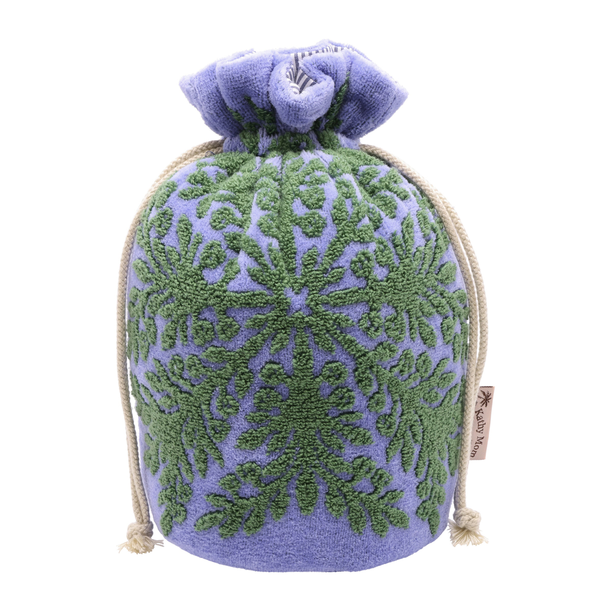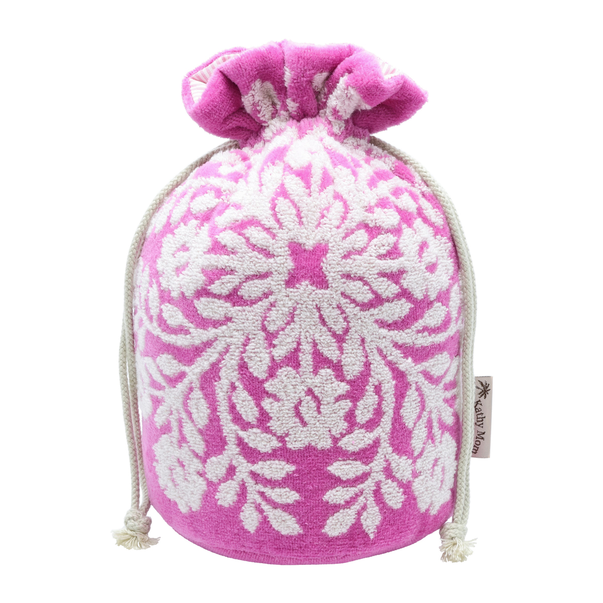 華やかな柄が素敵な巾着ポーチ&ヘアバンド。無撚糸蒸シャーリング加工で柄部分はループ状、グランドはシャーリングカットされ、凹凸感のある美しい仕上がりです。柄部分は無撚糸を使用し、ふわふわの肌触りをお楽しみいただけます
