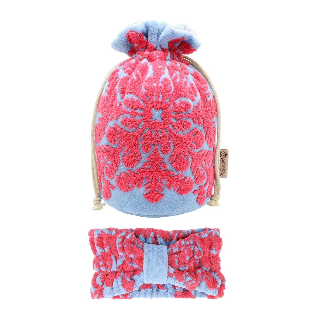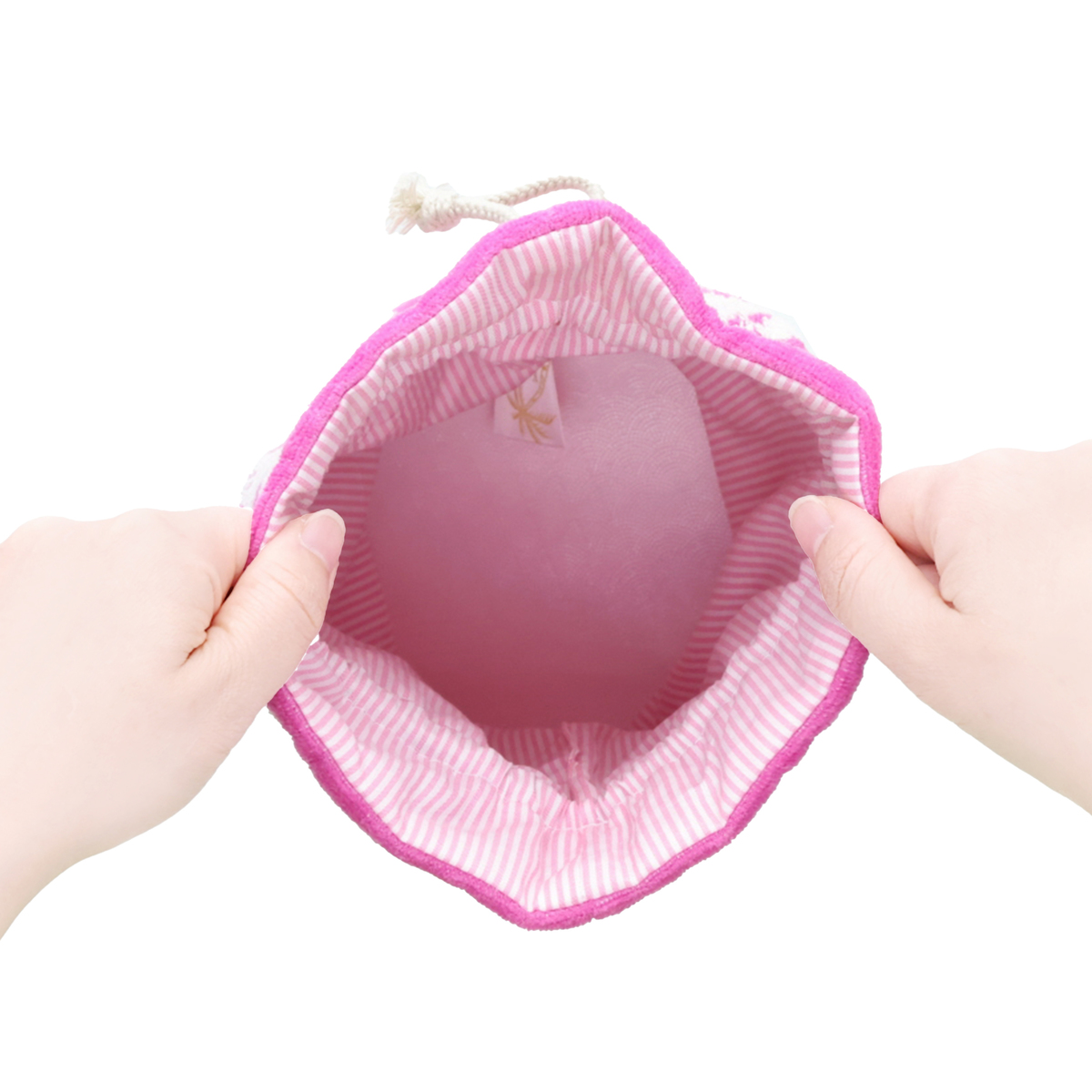 <ポーチ> [サイズ(約)] 縦25×横20×マチ14cm [重量(約)] 80g [素材] 表地:綿100% 裏地:綿100% [仕様] 開閉:巾着式 [ポケット] 内側:無 外側:無 <ヘアバンド> [サイズ] 約縦13×横23cm [重量] 約60g [素材] 綿100% [お手入れ] 洗濯機洗い可 [注意事項] ※最初より2〜3回の洗濯時には色落ちすることもありますので白いものと一緒に洗わないで下さい。なお、この商品は他の物に引っ掛かりやすいので、単独で洗うか洗濯ネットをお使い下さい ※クリーニングの際はクリーニングネットを使用し、静止型の乾燥機をお使い下さい ※ネット使用 ※つけ置き禁止 ※1点止めつり干し禁止 ※あて布使用 ※弱く絞る <ポーチ> ※初めのうちは、色が多少出ることがありますので、白物と一緒に洗わないで下さい ※洗濯後は、すぐ干して下さい ※塩素系漂白剤は、使用しないで下さい ※水道水中の塩素により、色が変わる事がありますので、すすぎは短時間で行って下さい ※パイルは他のものに引っかかりやすいので、ネット洗いをお勧めします ※破損の原因となりますので、尖ったものや鋭利なものは入れないで下さい <ヘアバンド> ※新品は水を吸いにくい為、ご使用前に水洗いをして下さい 【中国製】