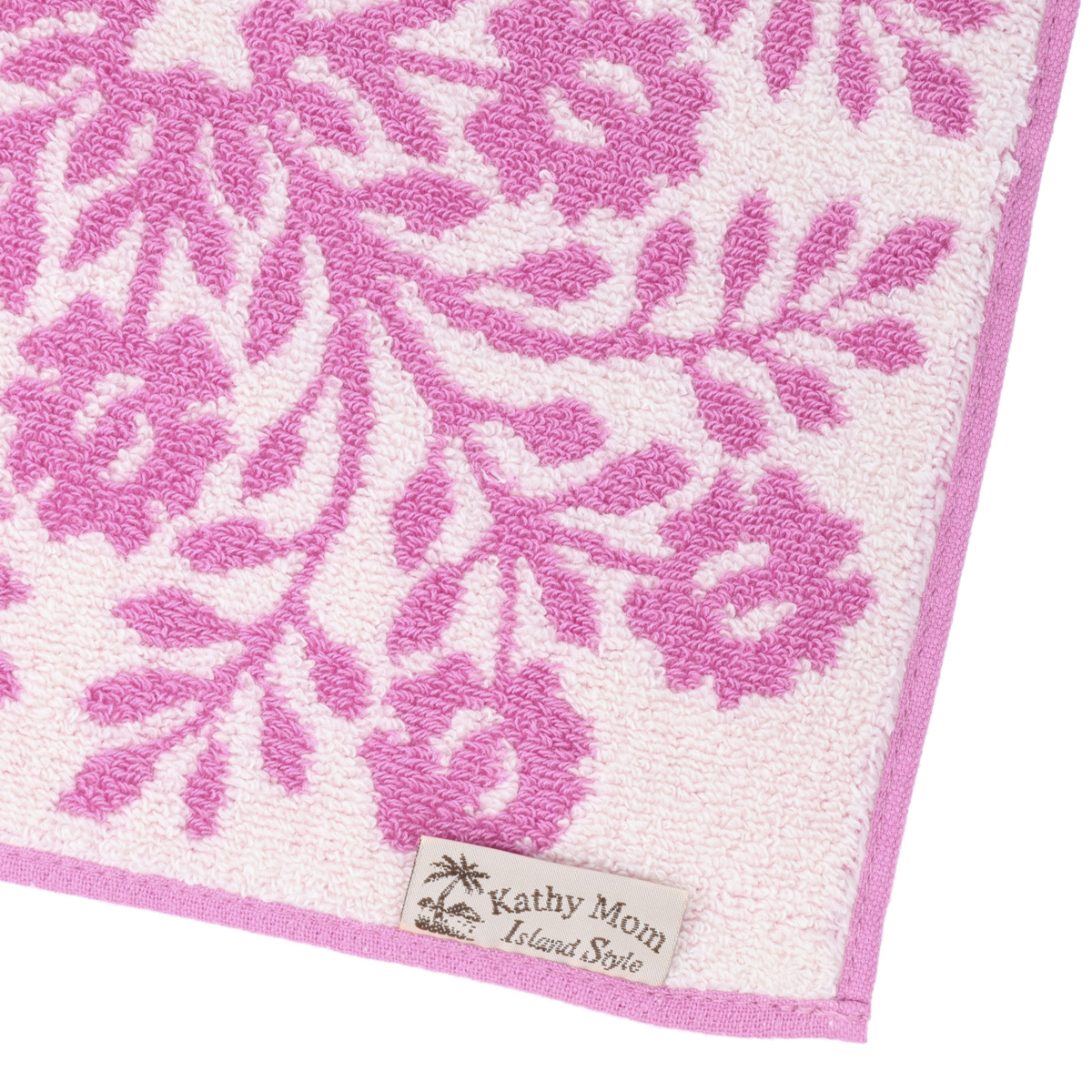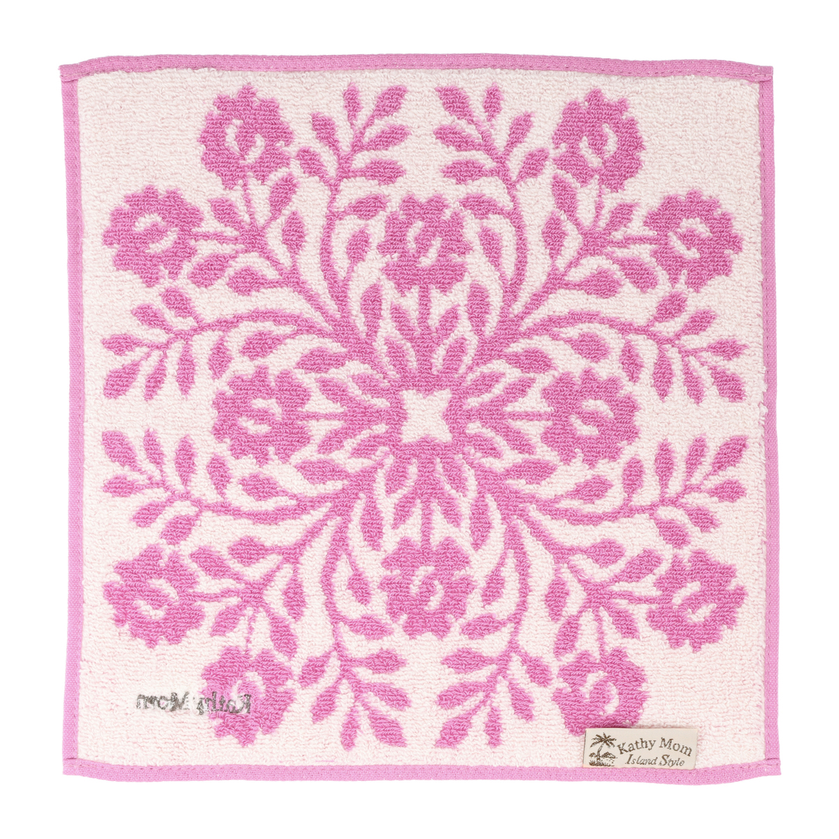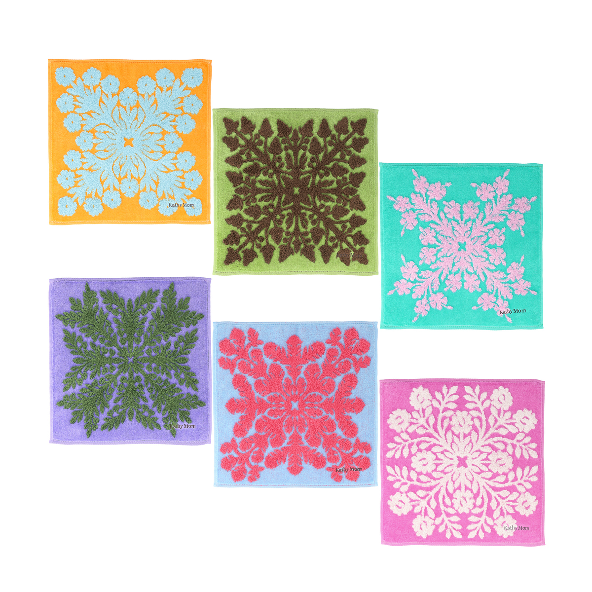 ハワイアンキルト作家 キャシー中島さんプロデュース「キャシーマム アイランドスタイル」の美しいミニタオル。ハワイの島々の伝統の花をモチーフにした「五つの島シリーズ」から、五つの島の柄にハワイ州の州花として有名なハイビスカスを加えた6柄のラインナップです