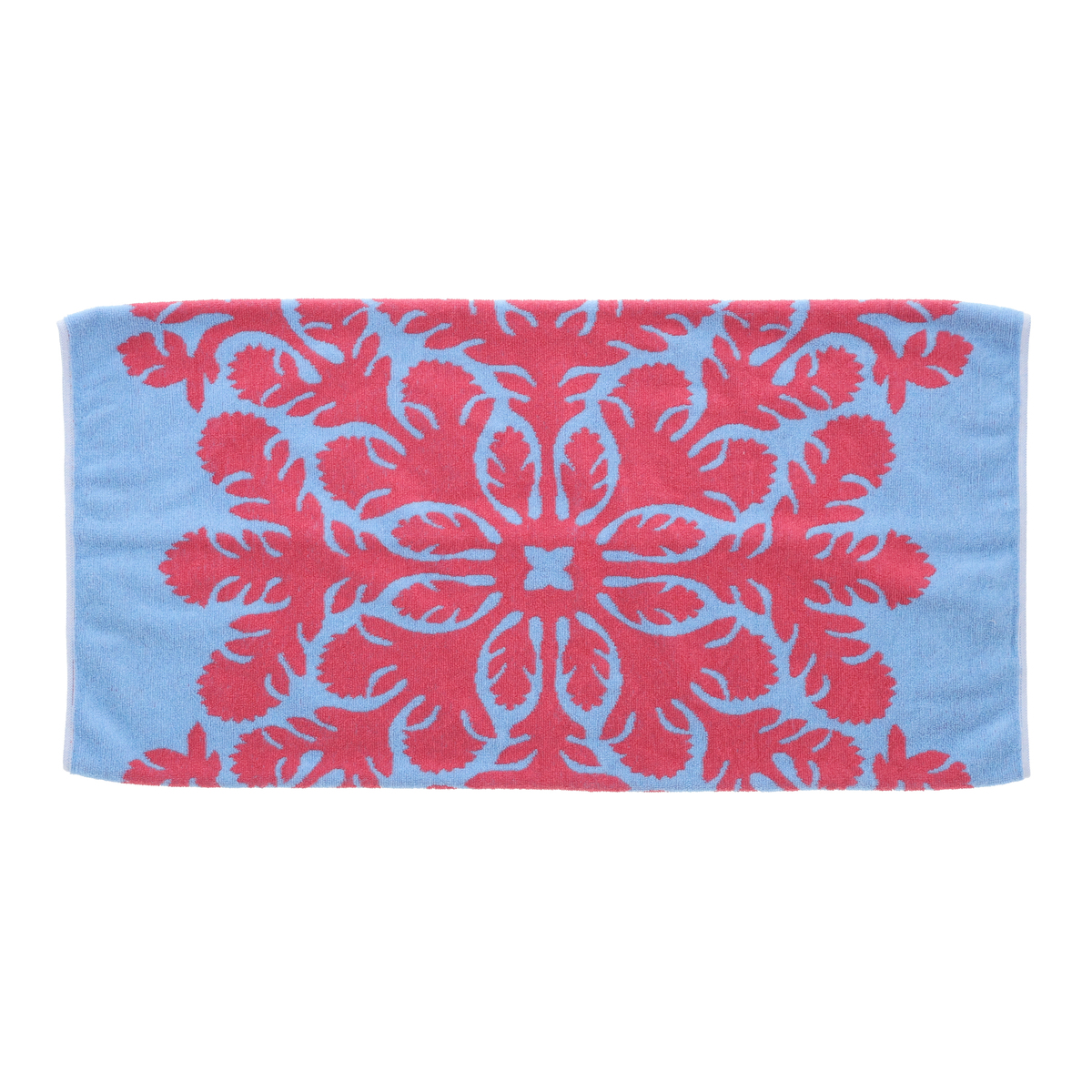 ハワイアンキルト作家 キャシー中島さんプロデュース「キャシーマム アイランドスタイル」の美しいピロー用タオル。ハワイの島々の伝統の花をモチーフにした「五つの島シリーズ」から、五つの島の柄にハワイ州の州花として有名なハイビスカスを加えた6柄のラインナップです