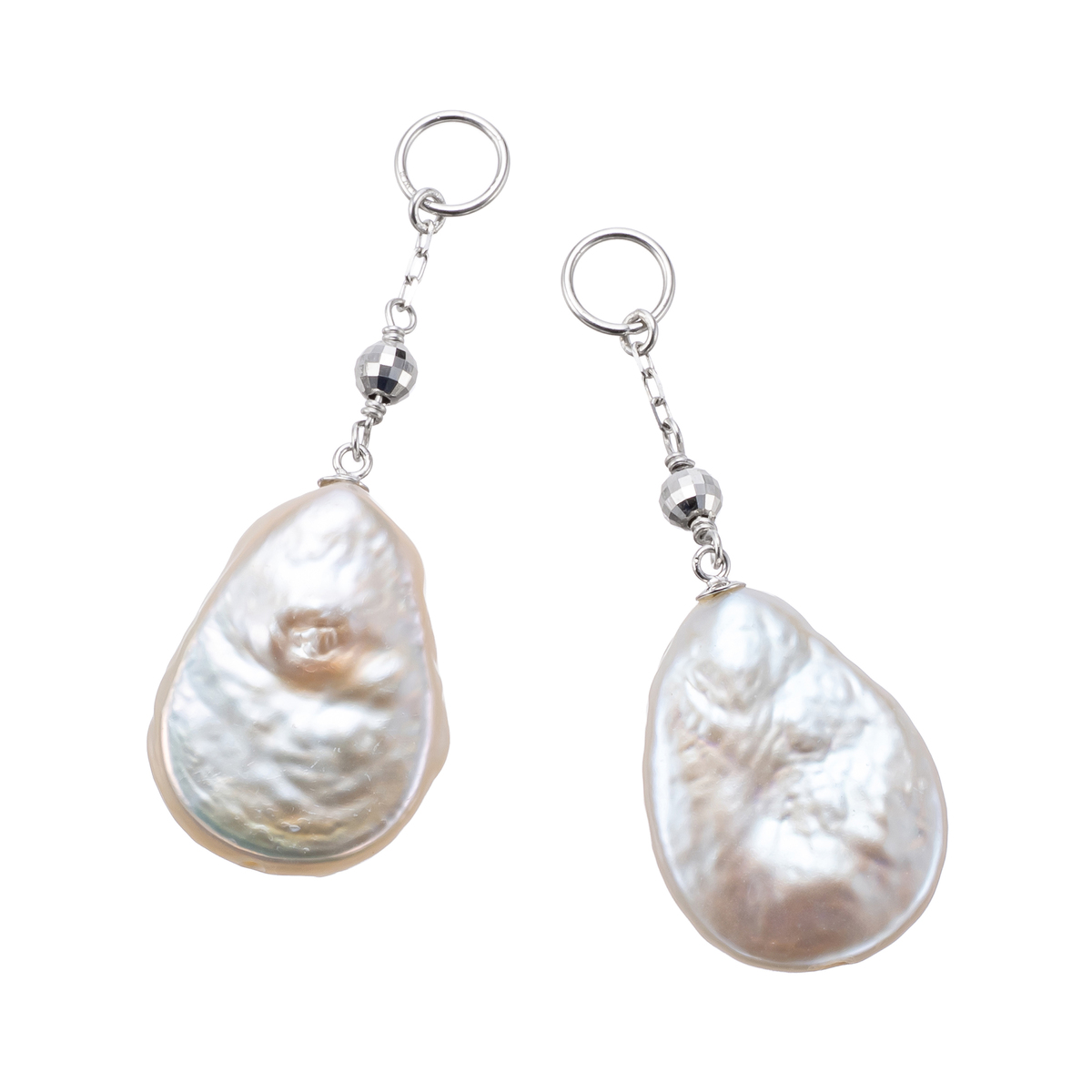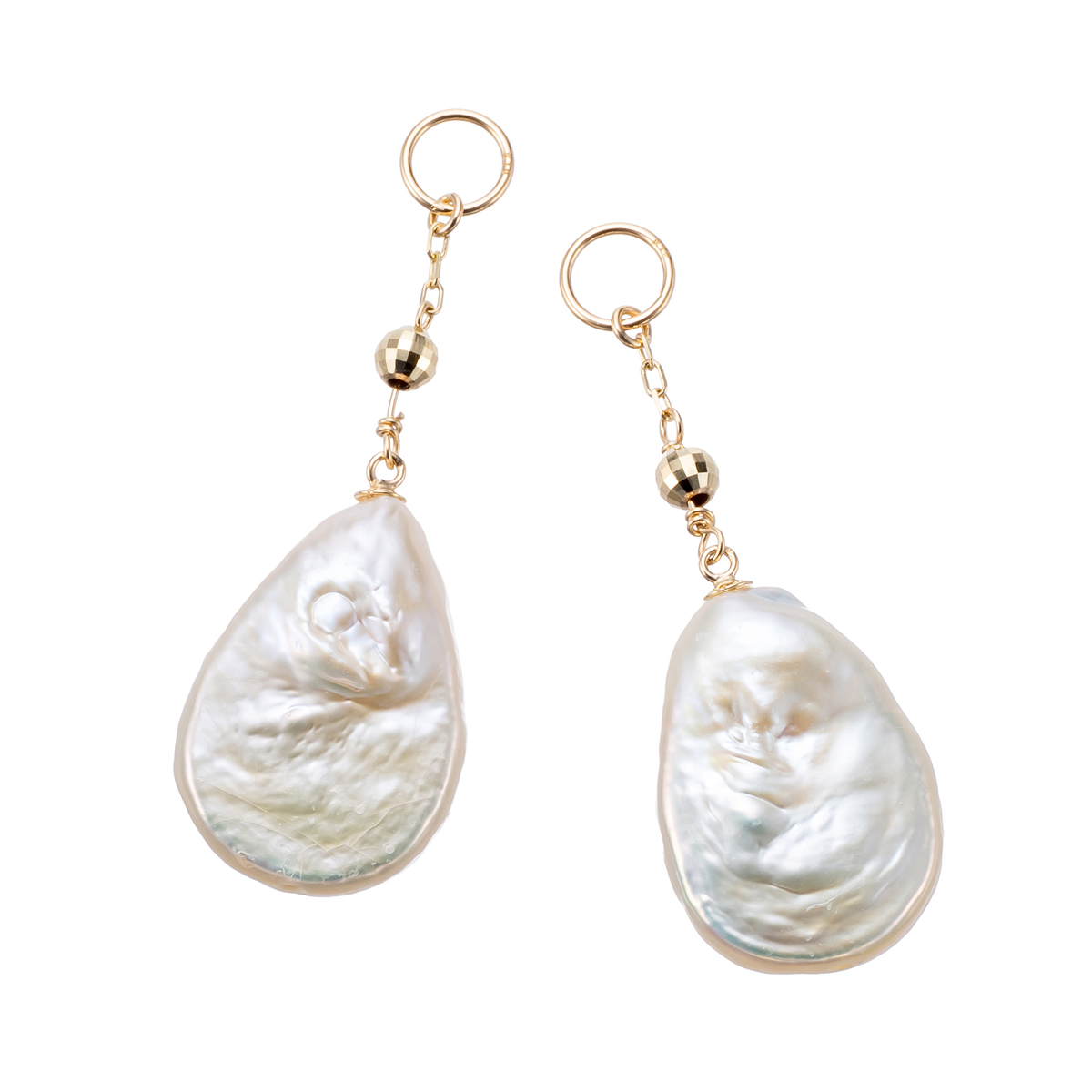 一つひとつ形が違うドロップ型の淡水パールを使用したピアリングチャーム。柔らかな光を放つ淡水パールと多面的にカットされたミラーボール。対象的な光の組み合わせがお顔周りを明るく華やかに演出します