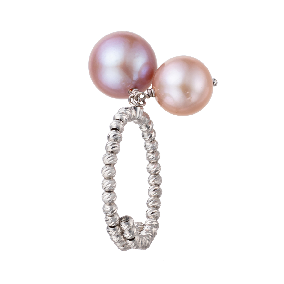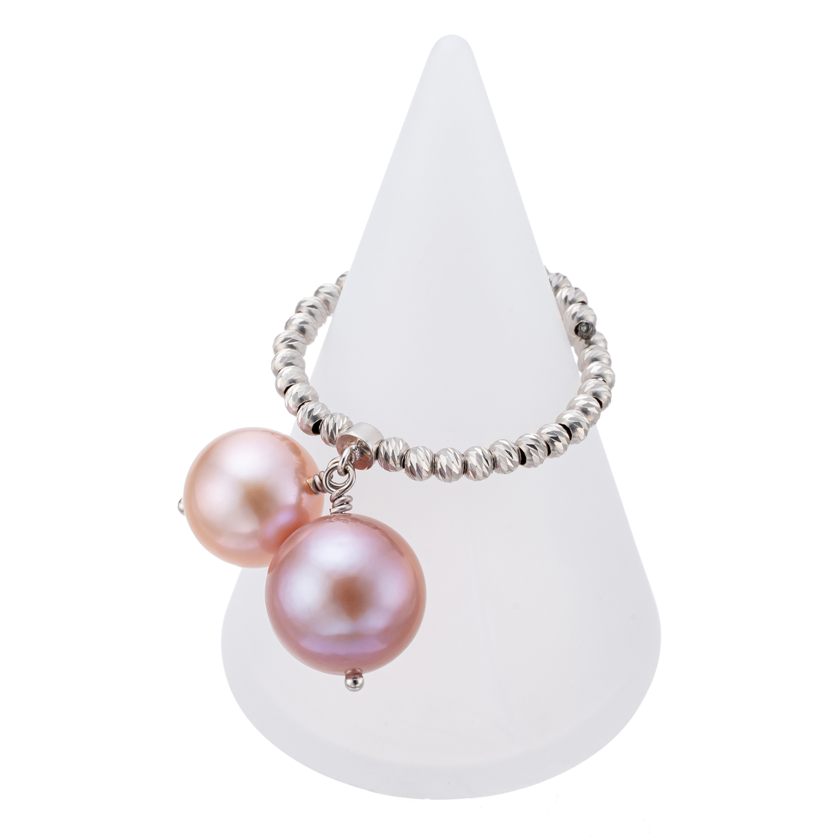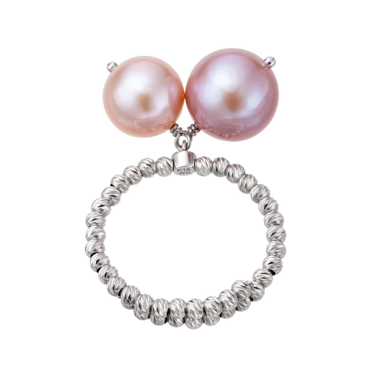 真珠総合研究所にテリがトップグレードの範疇と認められた有核淡水真珠のナチュラルなラベンダーカラーを使用したリング。マルチカラーで存在感のあるデザインが華やかさを添え、装いにアクセントを与えます