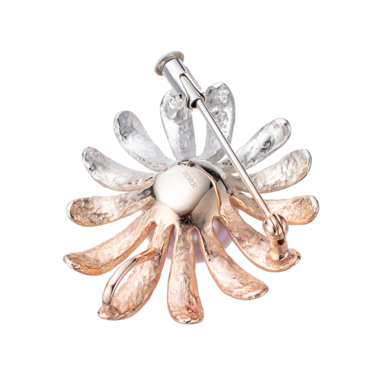 天然色のラベンダーパールが目を惹くブローチ/ペンダントヘッド。真珠総合研究所にテリがトップグレードの範疇と認められた有核淡水真珠を使用しています。枠のカラーグラデーションとパールの調和が美しく、装いに気負わず上品なアクセントを添えてくれるジュエリーです