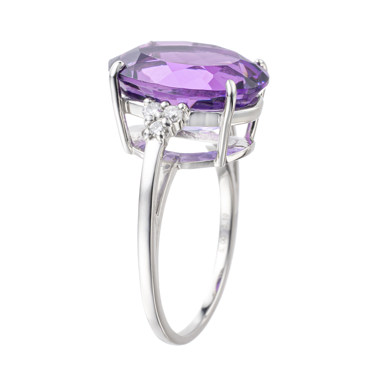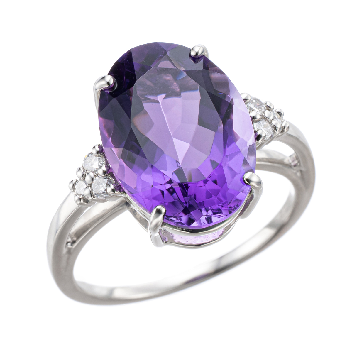 素材: [アメシスト] オーバルシェイプ 爪留め 1石 5.00ctUP [ダイヤモンド] ラウンドシェイプ 爪留め 6石 合計0.10ctUP 最大幅(約) 13.7mm 最小幅(約) 1.0mm 総重量(約) 4.2g [地金] プラチナ950 ■サイズ直し対象外 ■受注発注商品のためデザイン・価値に影響のない範囲で仕様が変わる場合がございます ■素材の大きさ・形・色合い、製品のサイズは1点1点多少異なります 【日本製(アメシストはザンビア産)】