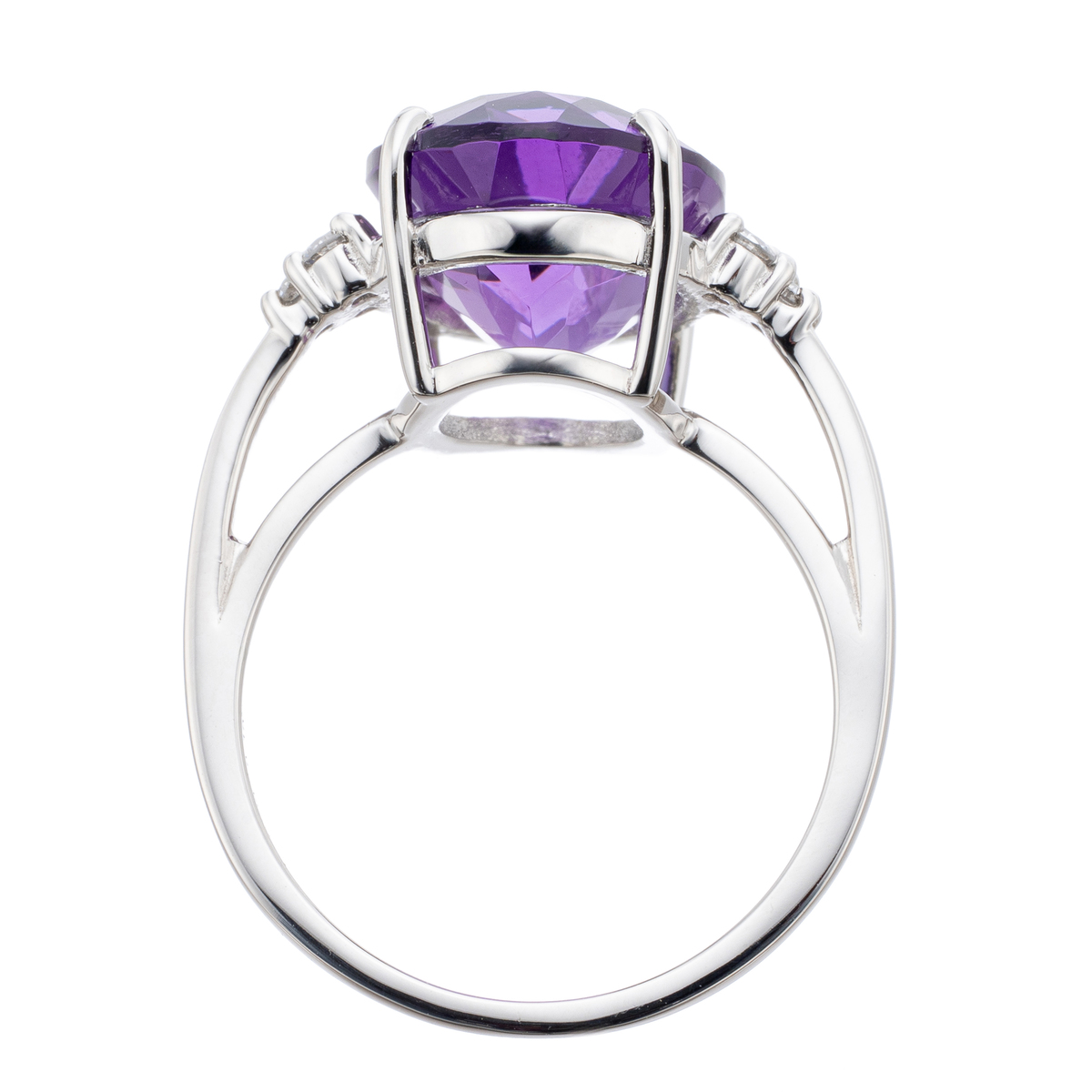 色鮮やかなパープルが美しいリング。5.00ctUPのアメシストがお手元を印象的に彩ります。和名【紫水晶】のとおり、淡色から濃色まで幅のある紫色ないし赤紫色を持つ水晶で、奥行きのある表情も魅力です
