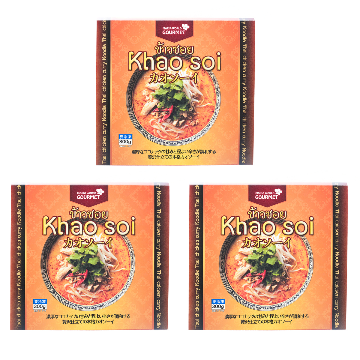 [アレルギー物質特定原材料8品目] 小麦 [内容量] 300g×3 [賞味期限] 出荷時点で賞味期限まで120日以上ある商品をお届けします [保存方法] 開封前:ー18℃以下で保存してください 開封後:お早めにお召し上がりください [お召し上がり方] 1.袋から商品を取り出し、トレー表面のフィルムをはがしてください 2.電子レンジ600Wで約5分30秒加熱し、全体を軽くかき混ぜてからお召し上がりください [注意事項] ※加熱してお召し上がりください ※一度溶けたものを再び凍らせると品質が変わることがありますのでご注意ください ※加熱調理後はすぐにお召し上がりください ※加熱調理後は熱くなりますので、やけどには十分ご注意ください ※ソースがゆるいため、開封時や取り出し時はご注意ください [原産国] タイ [原材料] スープ(ココナッツミルク、カオソイカレーペースト、パナンカレーペースト、ココナッツミルクパウダー、醤油、ココナッツシュガー、砂糖、カレーパウダー、食塩、大豆油、マサラパウダー、コリアンダーシードパウダー)、麺(小麦粉、食塩)、野菜(カリフラワー、ブロッコリー、ニンジン)、調理済み鶏肉/炭酸ナトリウム、乳化剤、二酸化ケイ素、リン酸二カリウム、(一部に小麦・大豆・鶏肉を含む)