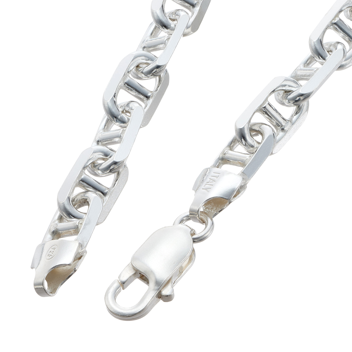 アンカーチェーンをモチーフにしたボリュームのあるブレスレット。シルバーの上品な光沢と洗練されたデザインが装いのポイントになってくれます