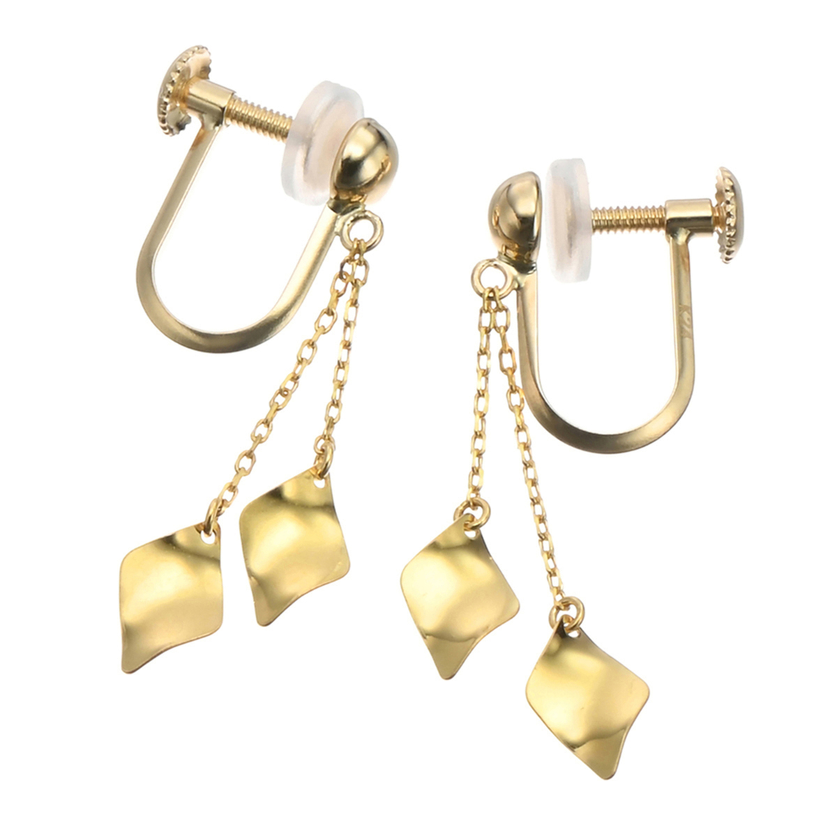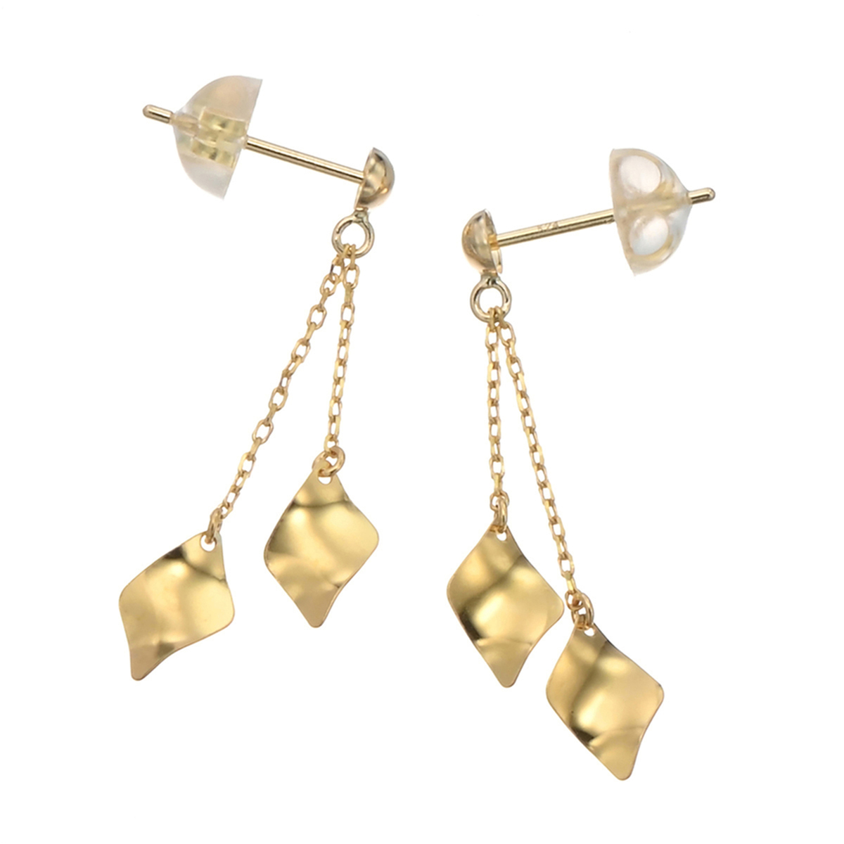 ひらひらと舞う木の葉を表現したイヤリングまたはピアス。木の葉に見立てた純金のパーツは、丁寧に磨きを施し、ひねりを加えました。動きによって変化する煌めきをお楽しみいただけます