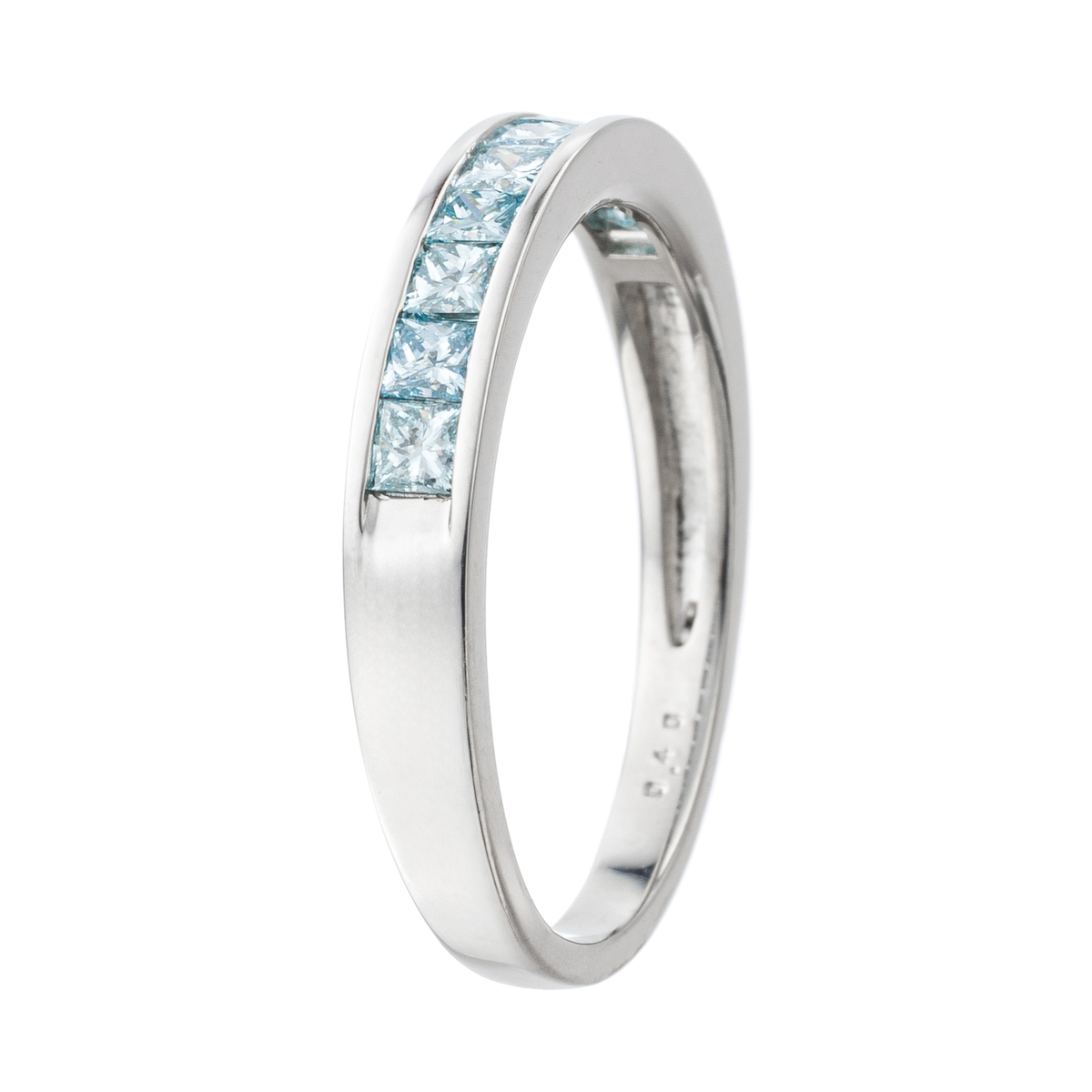 素材:[ブルーダイヤモンド(処理)] スクエアシェイプ レール留め 9石 合計0.40ctUP 最大幅(約) 3.0mm 最小幅(約) 2.0mm 総重量(約) 2.7g [地金] プラチナ950 [付属品] カード鑑別書 ■サイズ直し対象外 ■受注発注商品のためデザイン・価値に影響のない範囲で仕様が変わる場合がございます ■素材の大きさ・形・色合い、製品のサイズは1点1点多少異なります 【日本製】