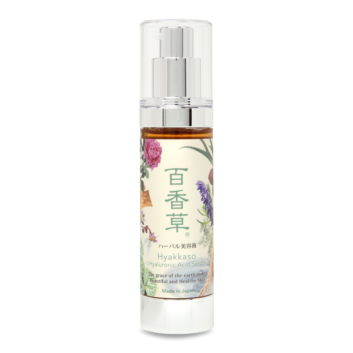 [商品内容] 百香草 ハーバル美容液50ml [使用方法] 中身が出るまで数回ノズルをプッシュしてください。 適量を手に取りお肌になじませるようにご使用ください [注意事項] ※お肌に異常が生じていないかよく注意して使用してください ※化粧品がお肌に合わないとき即ち次のような場合には、使用を中止してください。そのまま化粧品類の使用を続けますと、症状を悪化させることがありますので、皮膚科専門医等にご相談されることをおすすめします (1) 使用中、赤味、はれ、かゆみ、刺激、色抜け(白斑等)や黒ずみ等の異常があらわれた場合 (2) 使用したお肌に、直射日光があたって上記のような異常があらわれた場合 ※傷やはれもの、しっしん等、異常のある部位にはお使いにならないでください ※極端に高温又は低温の場所(冷蔵庫等)、直射日光のあたる場所には保管しないでください 【日本製】 [成分] 温泉水、BG、ユキノシタエキス、ヒアルロン酸Na、カワラヨモギエキス、アロエベラ液汁、オウバクエキス、甘草エキス、シャクヤクエキス、オタネニンジン根エキス、ソウハクヒエキス、オウゴン根エキス、トウニンエキス