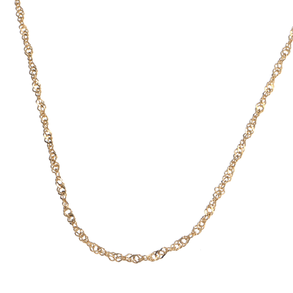 華やかで動きのある、スクリューチェーンネックレス。ひねりを加えた柔らかなラインが魅力的。プレッシングを加えて面を出したことで、より光を受け止めて煌めきます