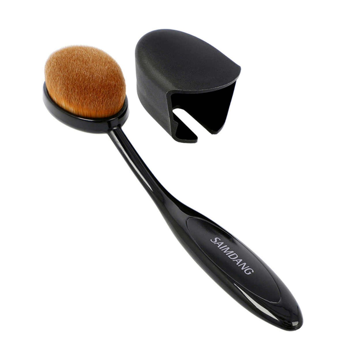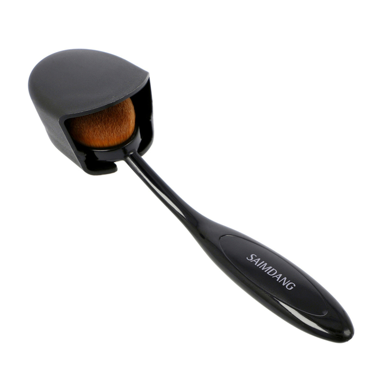 角(面)がなく微細毛で密度が高いオーバルブラシ付き。ファンデーションを肌の凹凸などに密着させ、表面を平らに整えることでナチュラルなツヤを与えてくれます