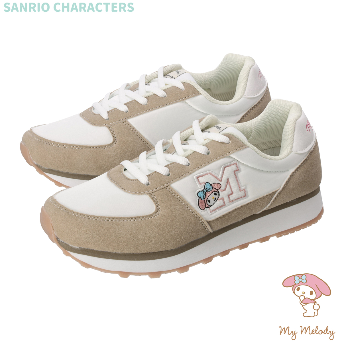 サンリオキャラクターのロゴがワンポイントになった軽量レトロスニーカー。ベージュはマイメロディ、ネイビーはシナモロール、ブラックはクロミ、グレーはキティ、イエローはポムポムプリンのロゴ入り。毎日のコーディネートにさりげない遊び心をプラスします