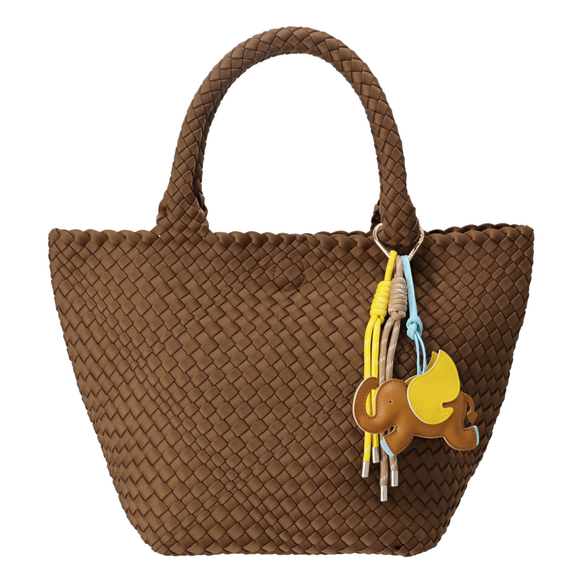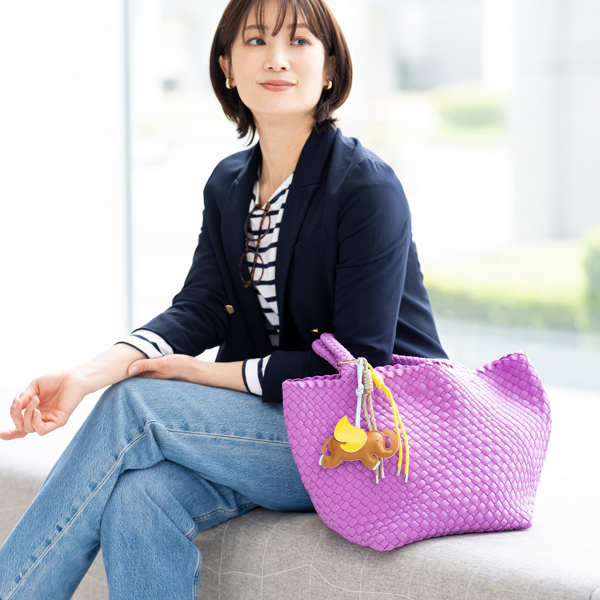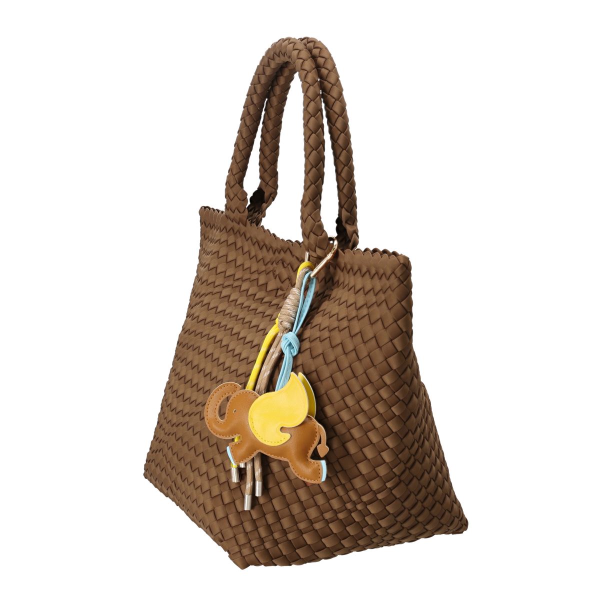 断面部分にはこば塗りをしてコーティングを施し、高級感をプラス。ゾウとタッセルのチャームが付属し、コーディネートや気分に合わせてバッグの印象を変えられます