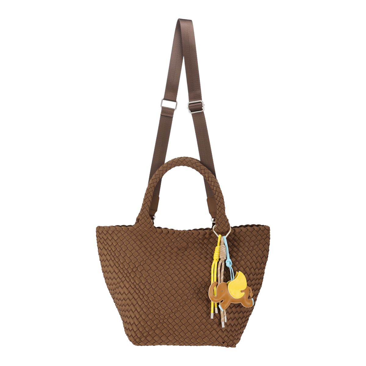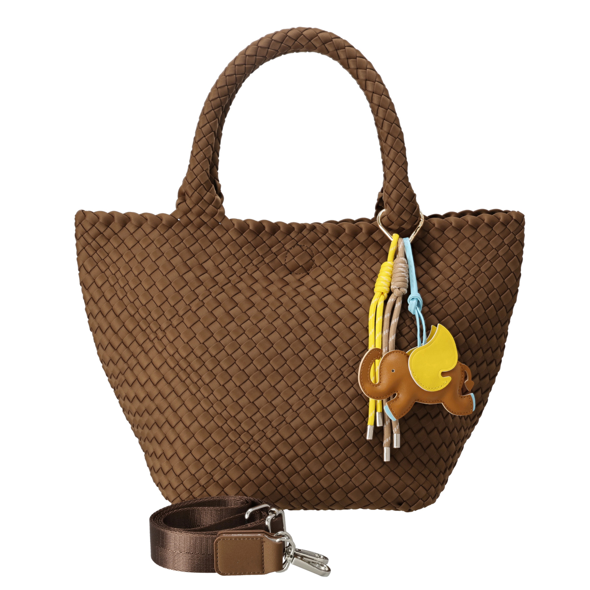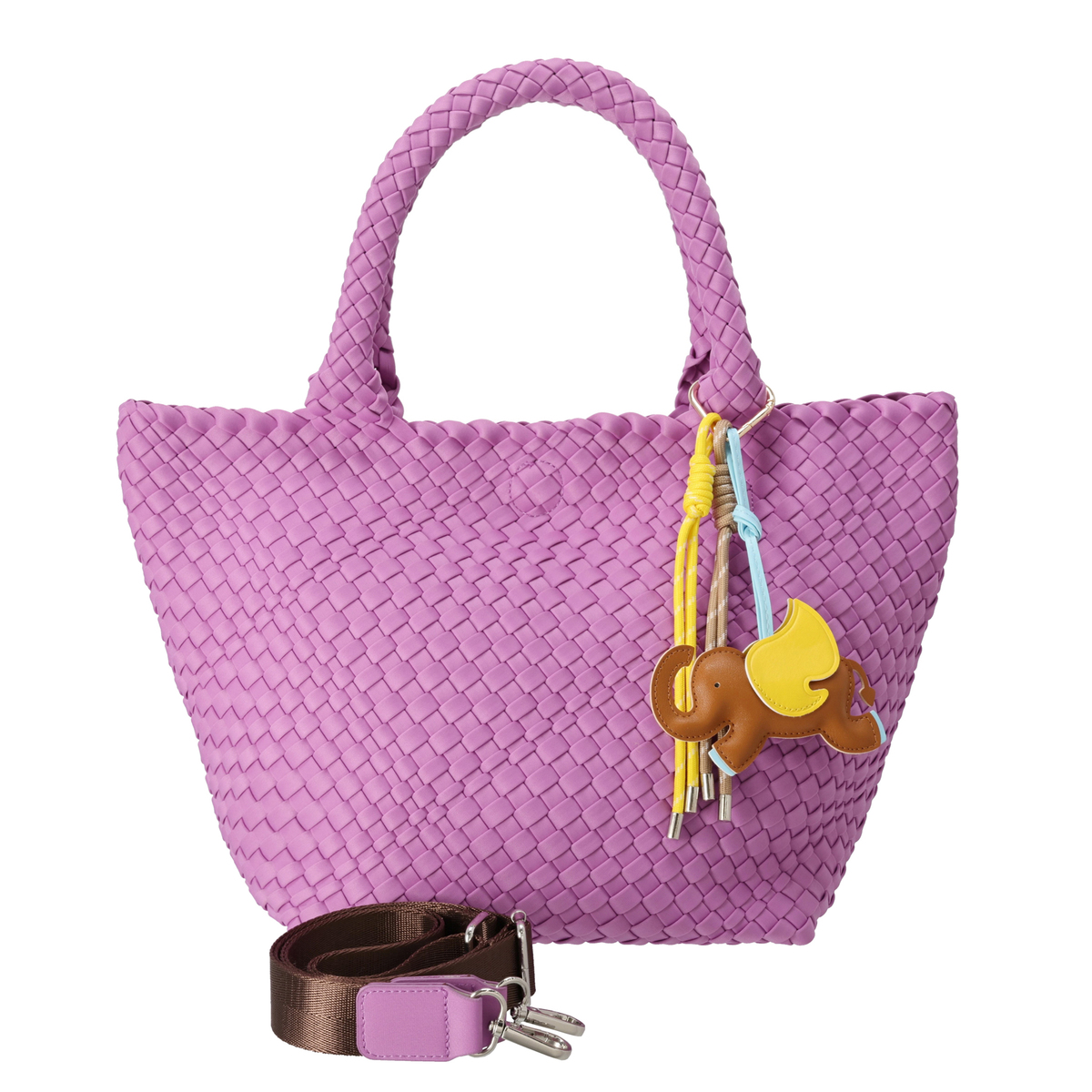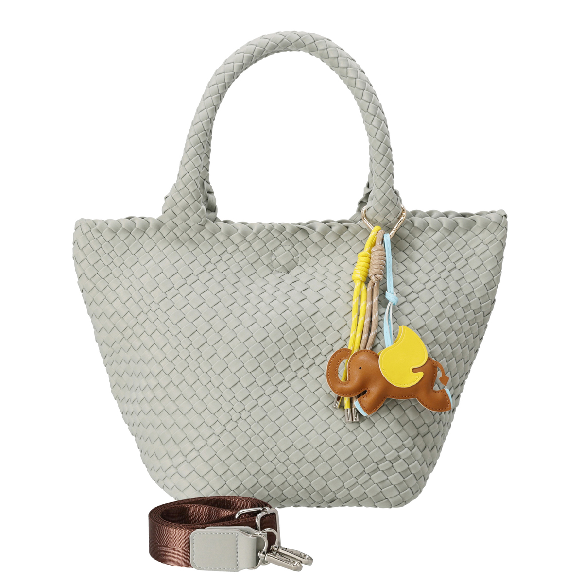 断面部分にはこば塗りをしてコーティングを施し、高級感をプラス。ゾウとタッセルのチャームが付属し、コーディネートや気分に合わせてバッグの印象を変えられます