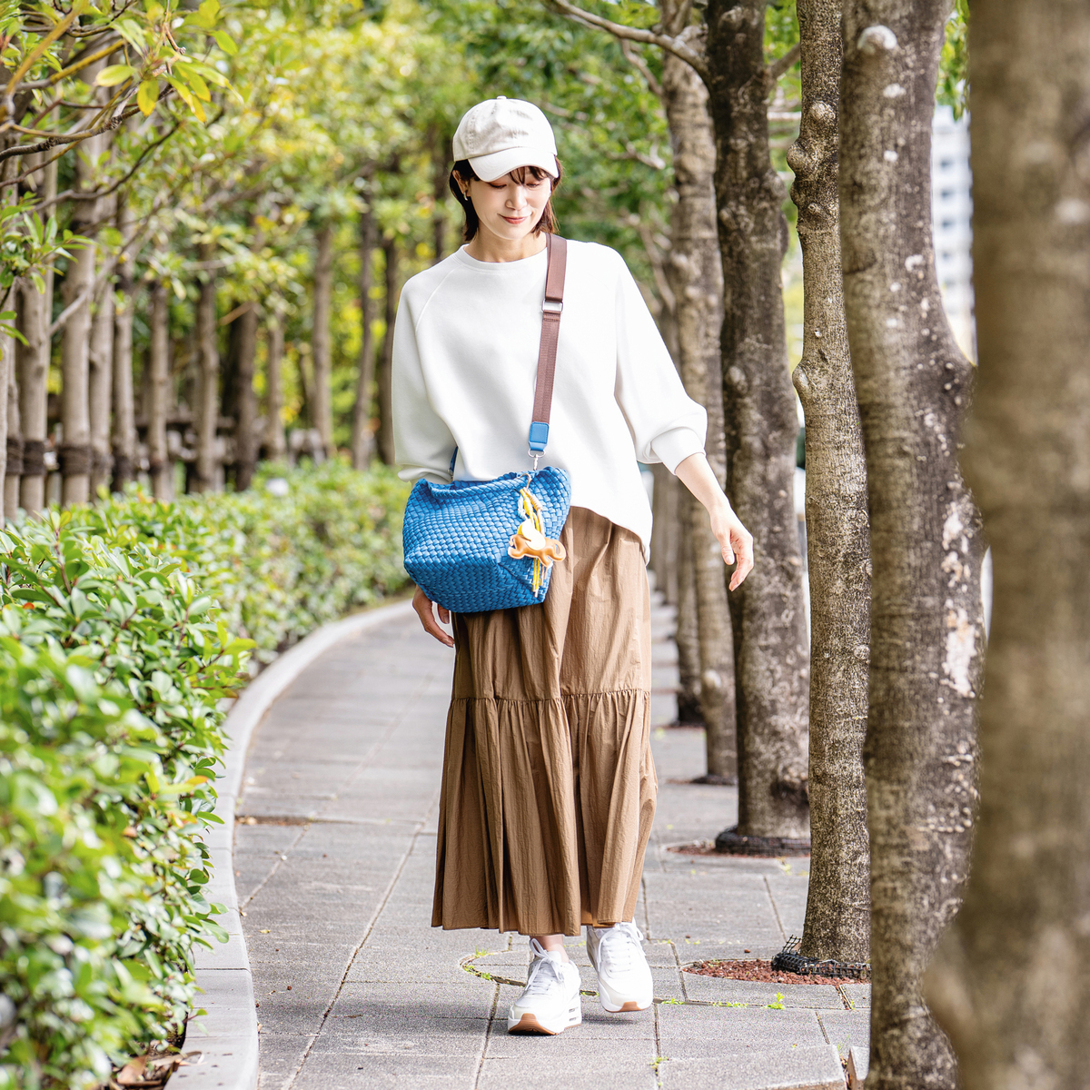 底マチが広くかさばらずに収納可能。また底板付きで物を入れた時に型崩れも防止。2WAY使いが可能な、長さ調節可能なショルダーベルト付き。さらにゾウとタッセルのチャームが付き、バッグのワンポイントに。雰囲気を変えてお楽しみいただけます