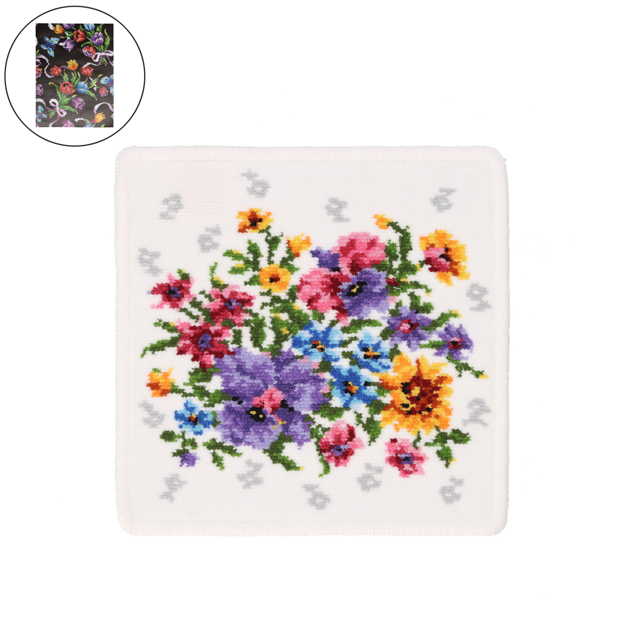 発色の良い綿糸を使い、繊細な技術で美しい花柄を表現したシェニール織りのハンカチ。色彩豊かな気品ある柄で、ギフトにもおすすめです