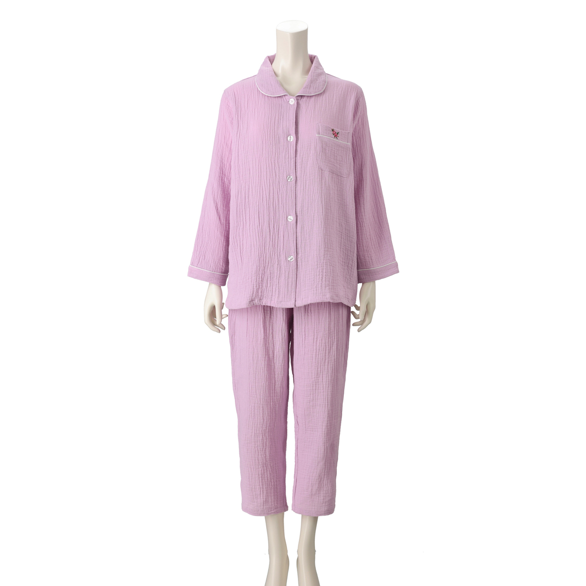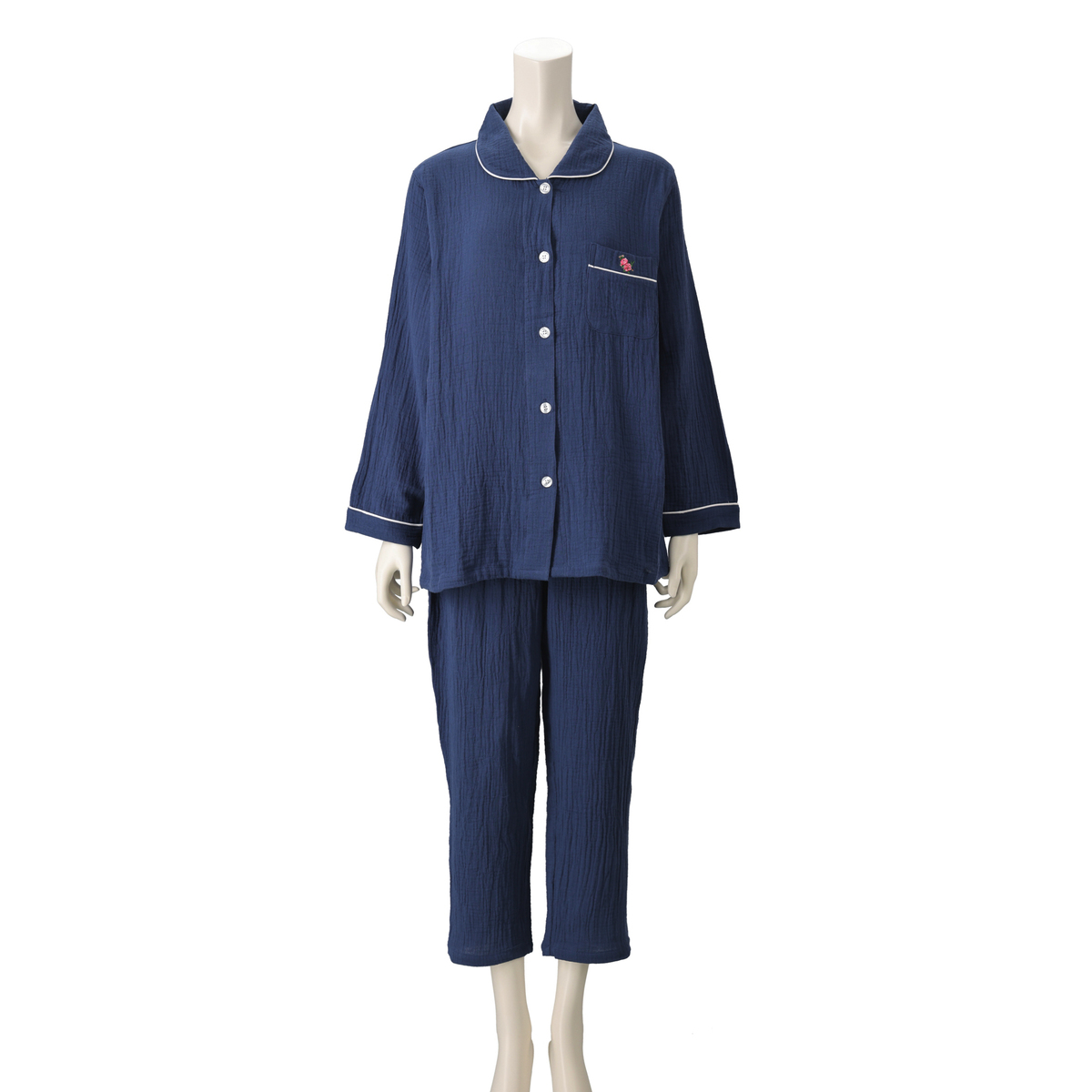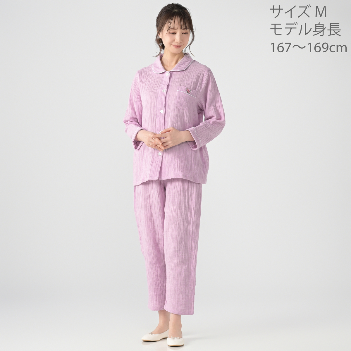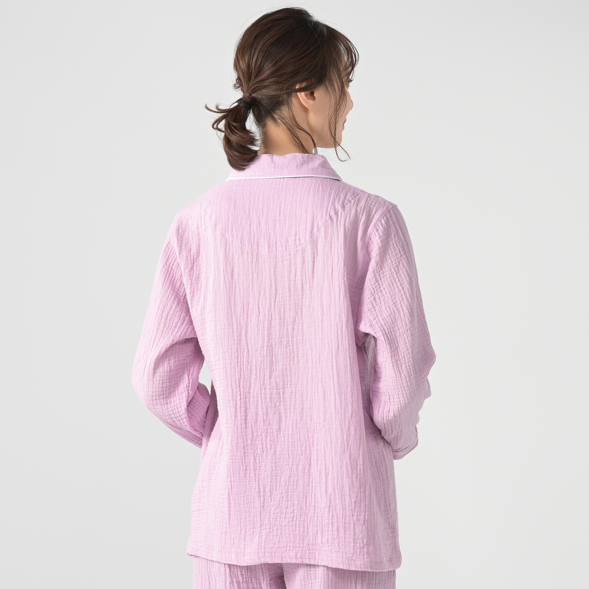 綿100%生地を使用した楊柳仕立てのダブルガーゼパジャマ。通気性があり、寒い季節も暖かく快適な着心地です