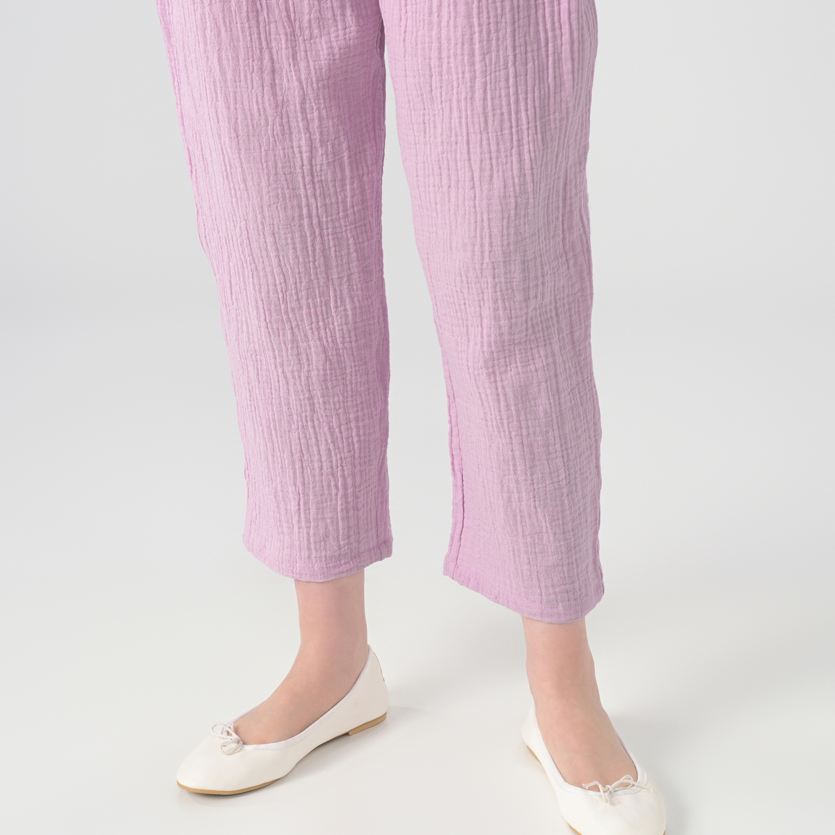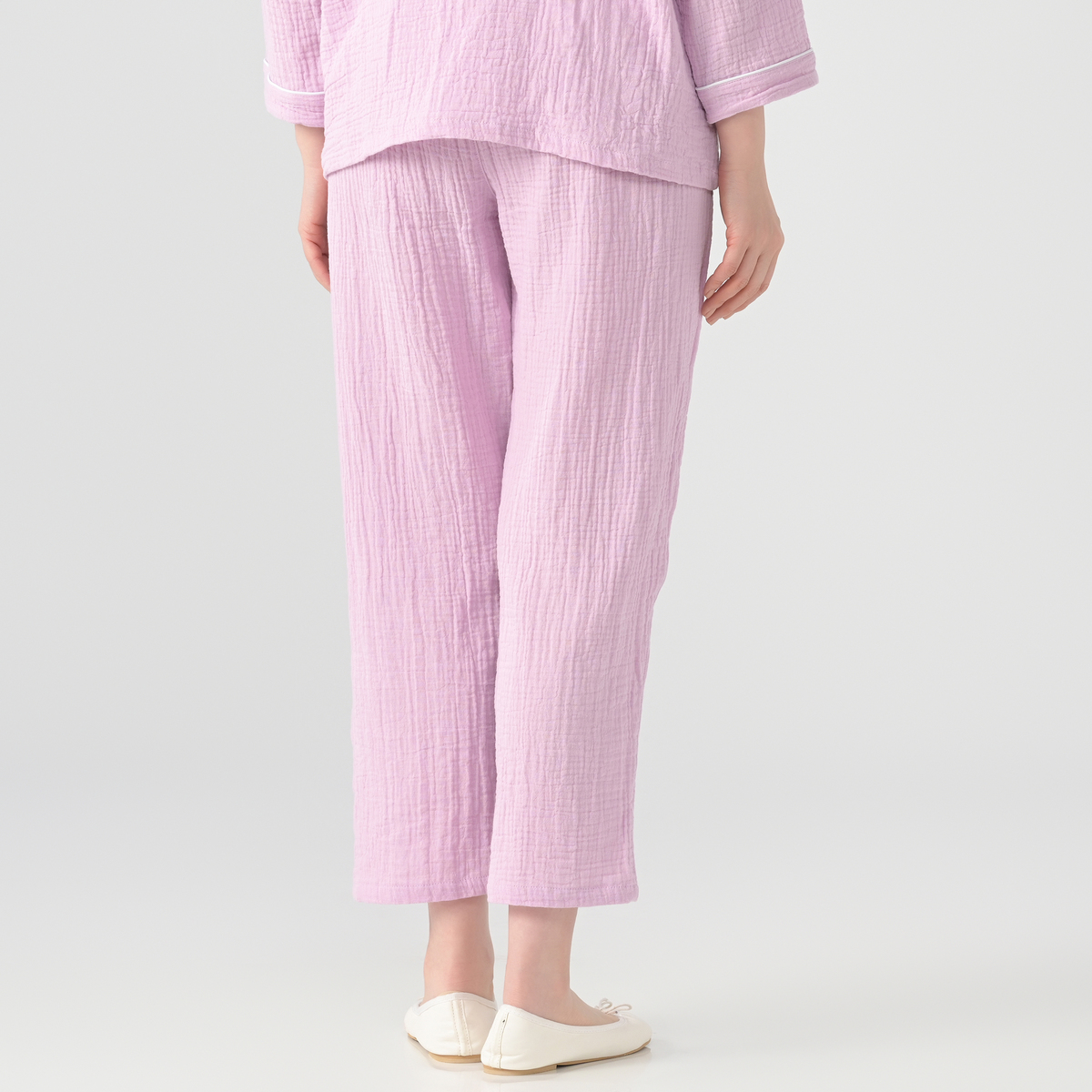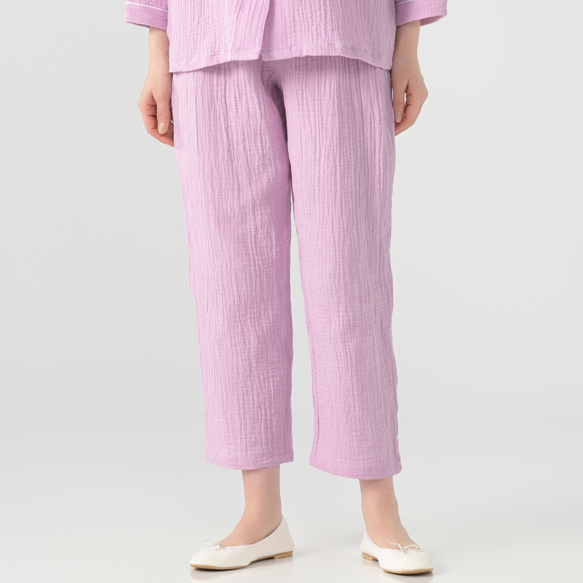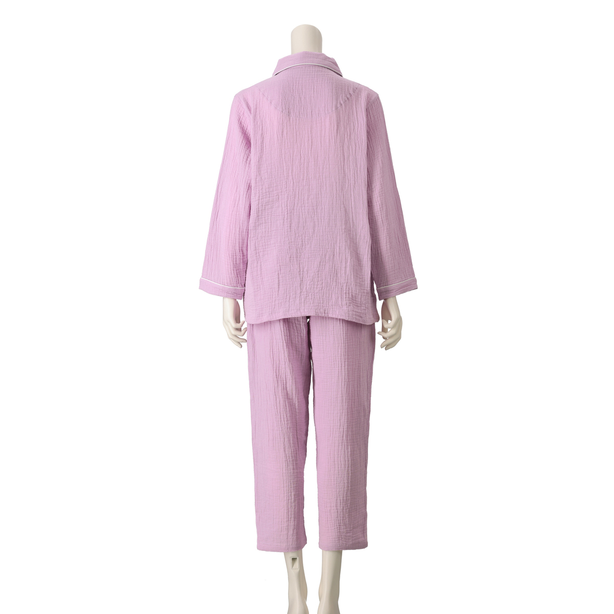 綿100%生地を使用した楊柳仕立てのダブルガーゼパジャマ。通気性があり、寒い季節も暖かく快適な着心地です
