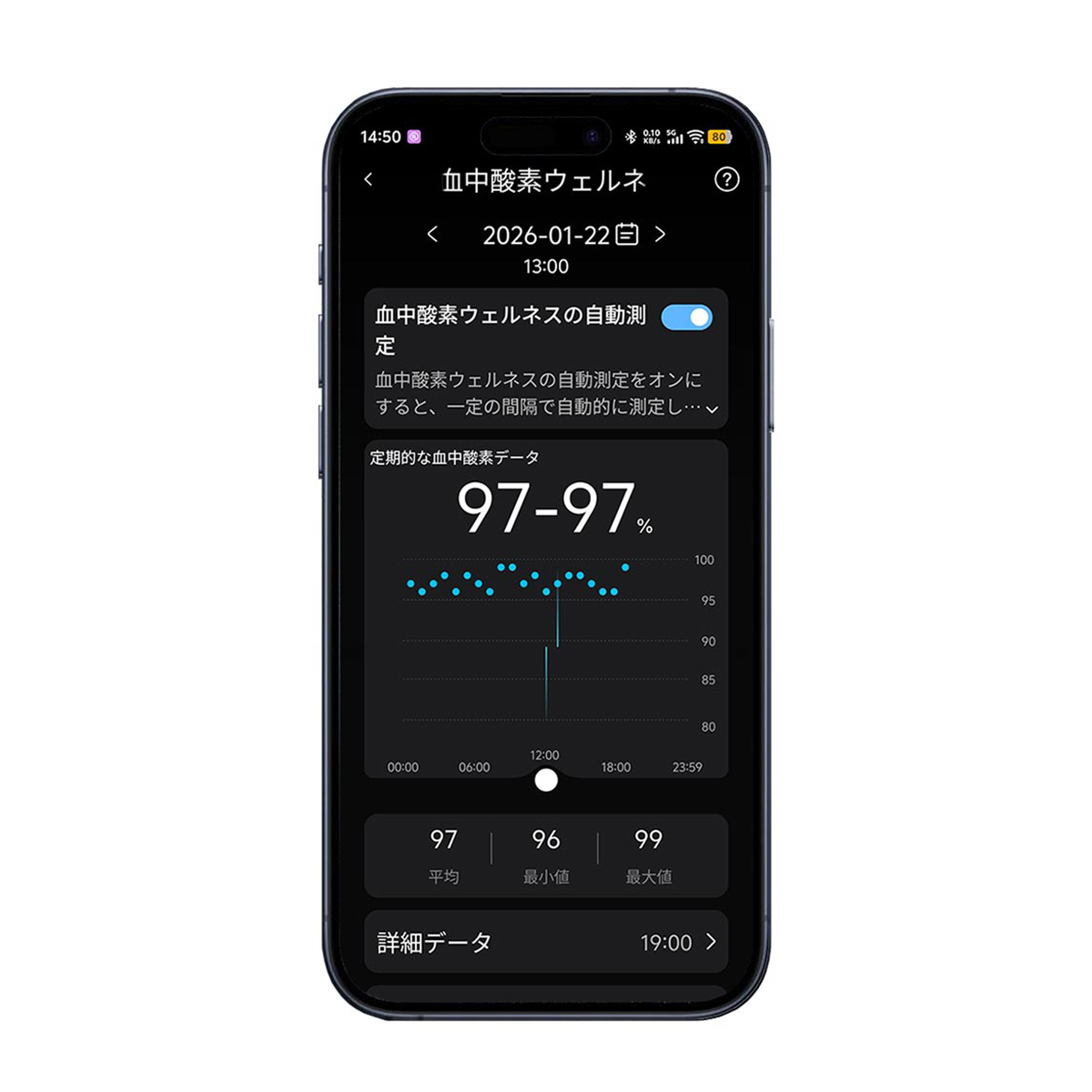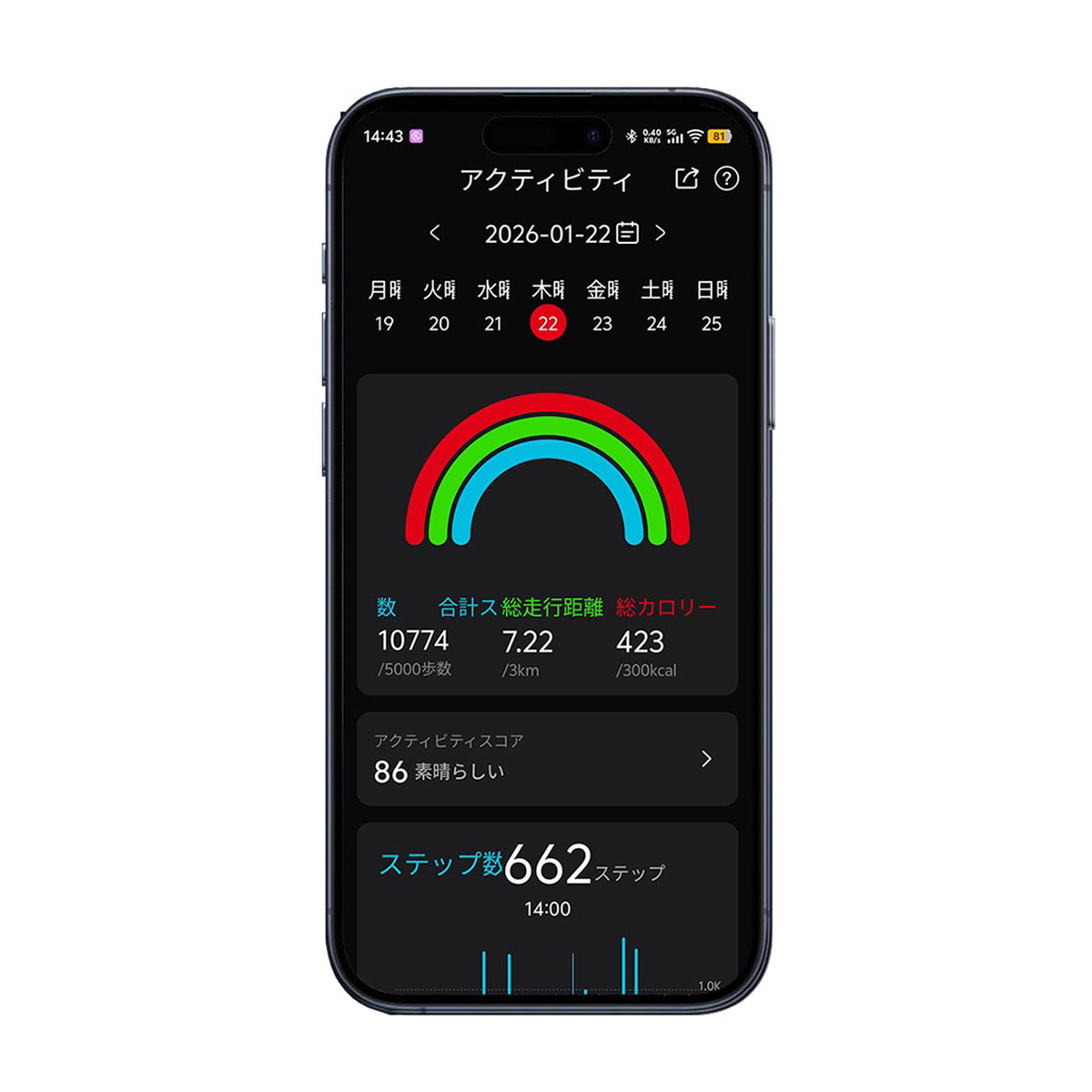 本体に液晶画面を搭載し、バッテリー残量や歩数、時間、心拍数などの情報をチェック。100種目以上の運動記録にも対応。データの測定精度を高めるために、人差し指、中指、薬指での着用がおすすめ。シリコンカバー付きでキズ防止、カバーの上からも操作可能です*2