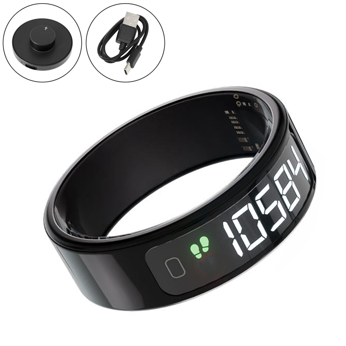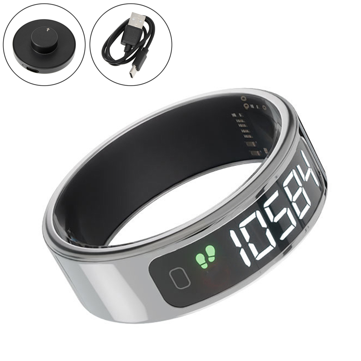 [商品内容] ・本体 ・充電スタンド ・充電用USBケーブル(Type A to C) ・シリコンカバー ※ACアダプターは付属しておりません [サイズ]内周(約) 7番(13号〜14号):1.79cm 8番(16号〜17号):1.83cm 9番(18号〜19号):1.91cm 10番(20号〜21号):2.00cm 11番(23号〜24号):2.08cm 12番(25号〜26号):2.16cm 13番(28号〜29号):2.23cm ※内周は目安 [重量]約4.7g(13番) [充電時間]約1時間 [使用可能時間]約3日間 [対応OS]iOS10以上 Android8以上 【中国製】 [注意事項] ※航空機内では使用しないでください。電波が影響を及ぼし、誤動作による事故の原因となるおそれがあります。ワイヤレス機能の航空機内でのご利用については、ご利用の航空会社に使用条件などをご確認ください ※本製品で測定できる数値はあくまで目安となる参考値であり、医療目的で使用できるデータではございません。測定する環境、装着の具合によって数値に大きな差異が出ることがございます。不具合ではございません ※ペースメーカーや除細動器などの医療機器を装着されている場合、本品の電波が機器の動作に影響を与える可能性があります。医師や医療用機器製造者に影響を確認してからご使用ください ※全ての機能は日常的な運動管理であるウェルネス・フィットネス目的の製品であり医療機器ではありません。病気などの診断、予防、治療の目的にはご使用いただけません ※本製品は精密機械であるため、落下やぶつけるなどの衝撃を与えないでください。性能や機能の異常、または外装の破損の原因になります ※ご利用の前に、付属のUSB充電スタンドにて1時間充電してからご利用ください ※化粧品、日焼け止めクリーム、アルコール、化学洗剤、防虫剤など刺激の強い薬品は本製品の金属部分やプラスチック部分を傷める恐れがありますので使用しないでください。付着した場合は、キレイな布でお拭き取りください ※車のダッシュボードなどの振動がある場所、高温になる場所での保管はおやめください。本製品の故障、破損の原因になります ※急激な気温の変化にさらさないでください ※本製品を充電する前に、リングに汚れがある場合は、必ず汚れを拭き取ってから、充電してください。故障の原因になります ※肌に違和感や異常を感じた場合、直ちにご使用をおやめください ※本製品を分解しないでください ※保管の際は小さなお子様の手の届かぬ場所で保管してください ※本製品は精密機器です。ご利用に際しては本製品の取扱説明書をご熟読頂き正しくご利用ください ※商品は予告なしに一部を改良する場合がございます ※IPhoneは米国Apple Inc社における米国およびその他の国における登録・登録商標です。Android は Google LCCの商標です ※本製品はリチウムイオン充電池を含みます ・本製品に強い衝撃を与えないでください。 ・シャワーやサウナの粒子が細かな水分が発生する場所ではご利用頂けません。本製品の故障や、リチウム電池の膨張/ 発熱等の原因につながります。 ・充電を行う場合は付属の充電ケーブルを用いて充電を行ってください ・急速充電器やPD充電器は使用しないでください ※通常(5V/1A程度)のUSB充電器をご利用頂くか、パソコンの USBポートでの充電をおこなってください ※ケーブルを束ねた状態で充電をおこなわないでください ※バッテリーの経年劣化は保証対象外になります ※廃棄する場合はお住まいの自治体のルールに基づき廃棄してください ※装着時に本製品が熱をもつ(いつもとは異なる)等の異常を感じた場合はご利用を止めてください