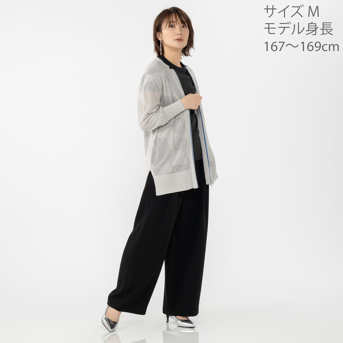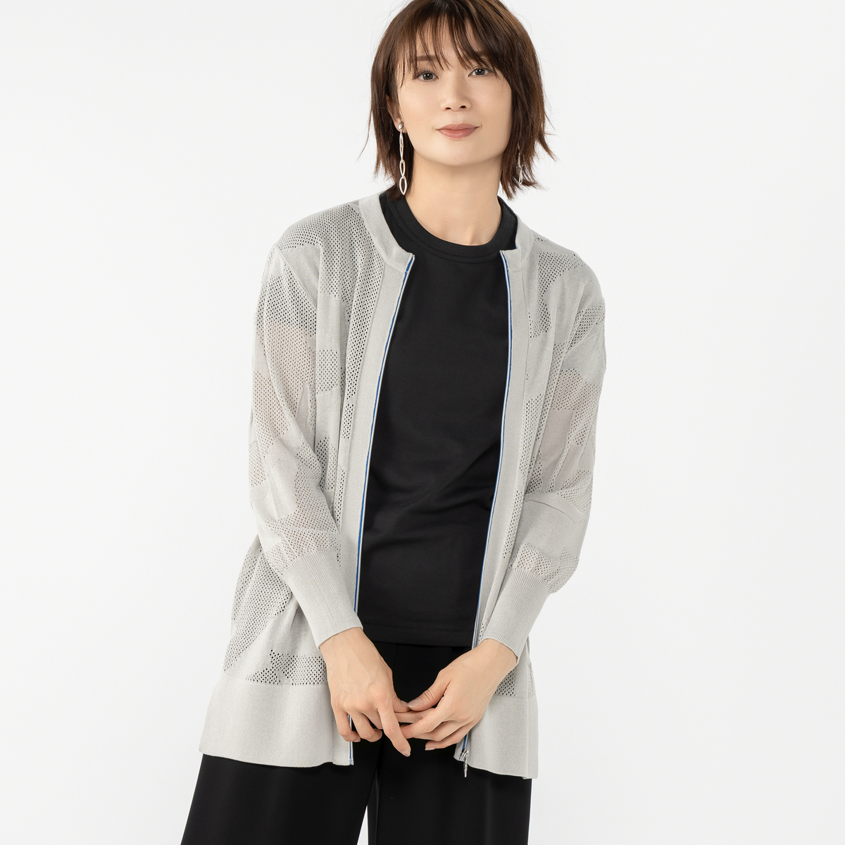 No. 752623 SUPERLADY イナズマエンブロイダリーメッシュカーディガン