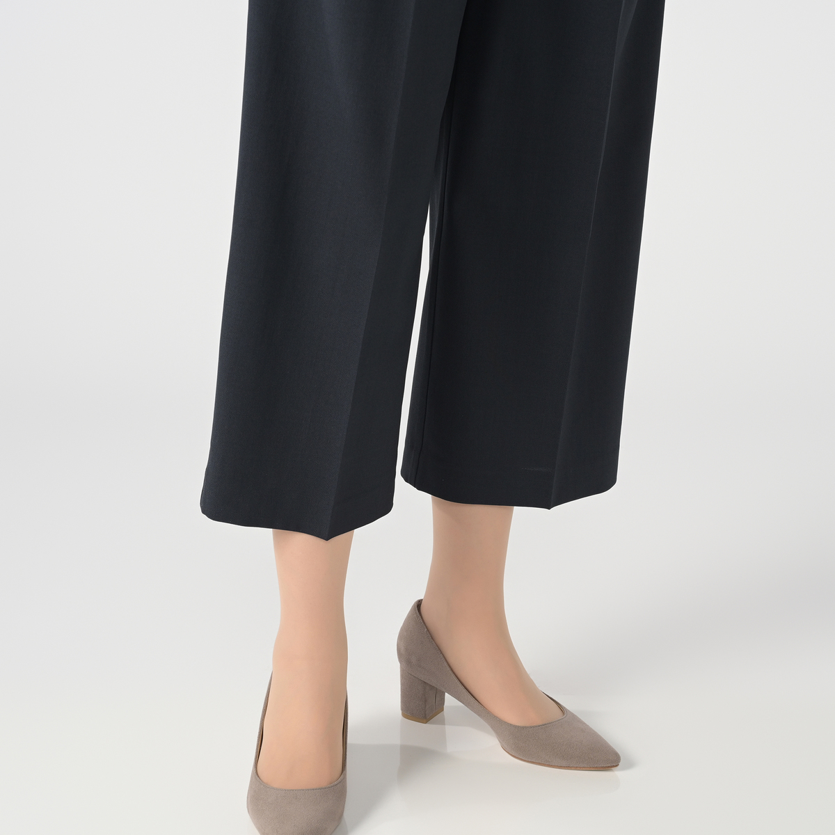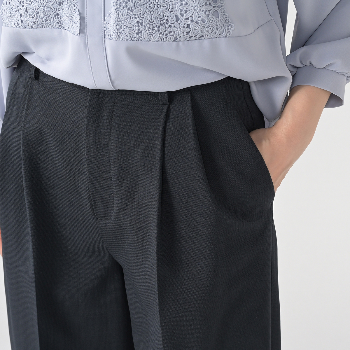 軽くストレッチ性のある素材を使用したストレートワイドパンツ。ウエストに滑り止めテープが付き、シャツをインした時も、便利に着こなしていただけます