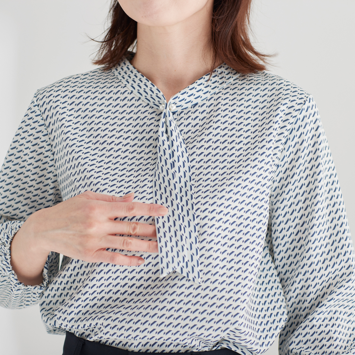 No. 752638 Beauty Fit ボウタイプリントブラウス