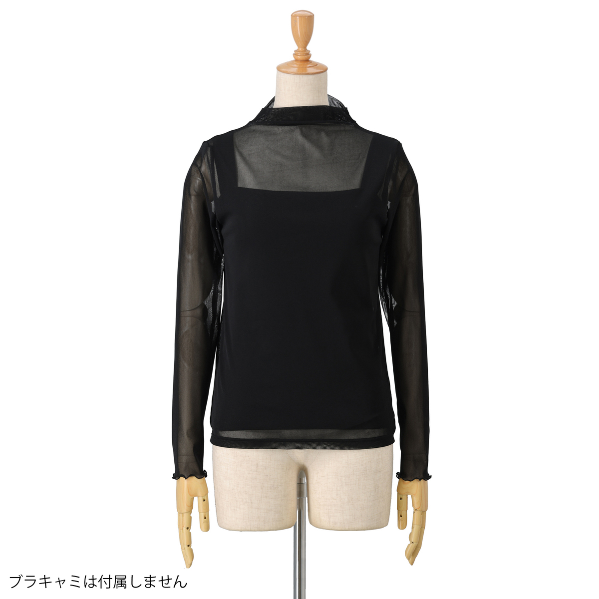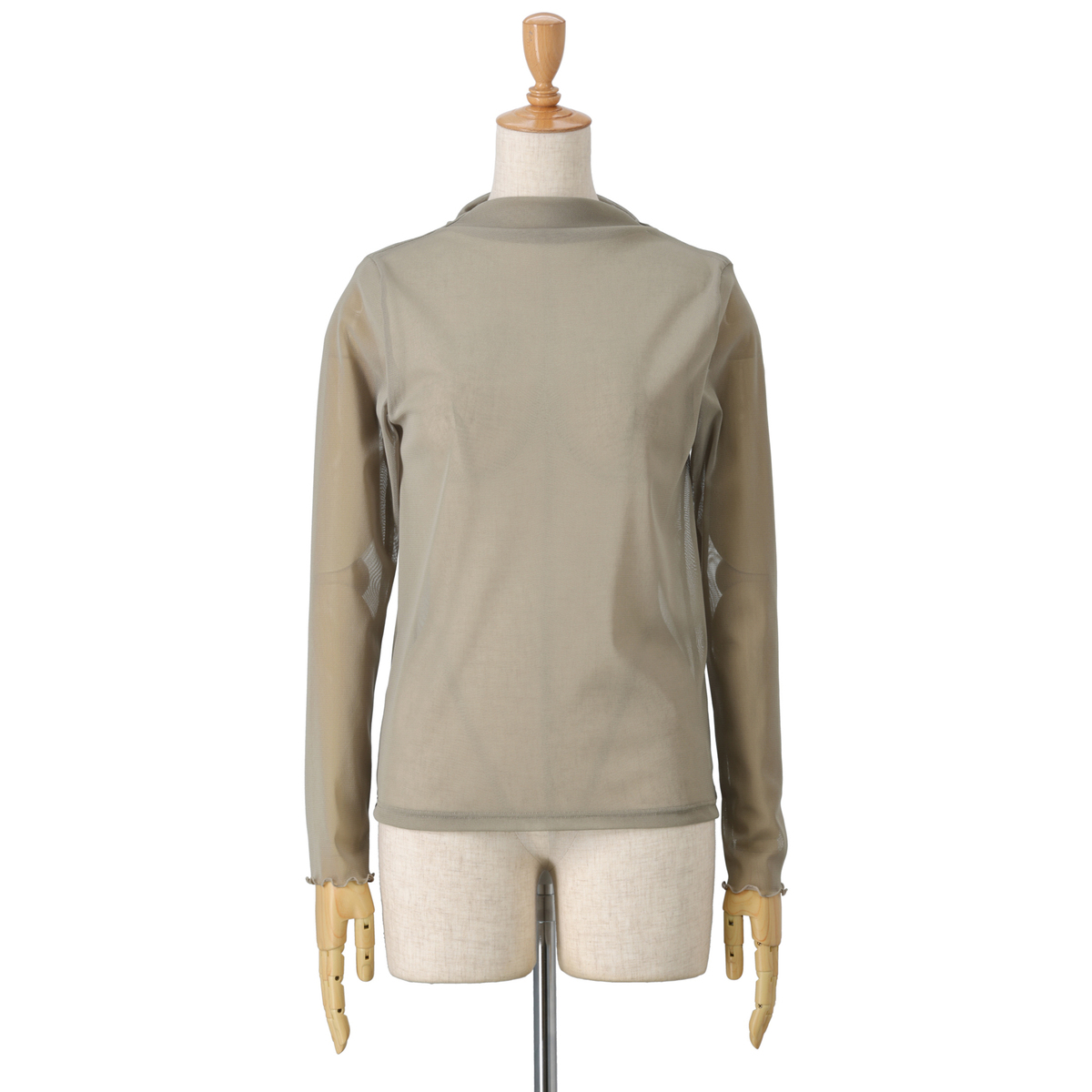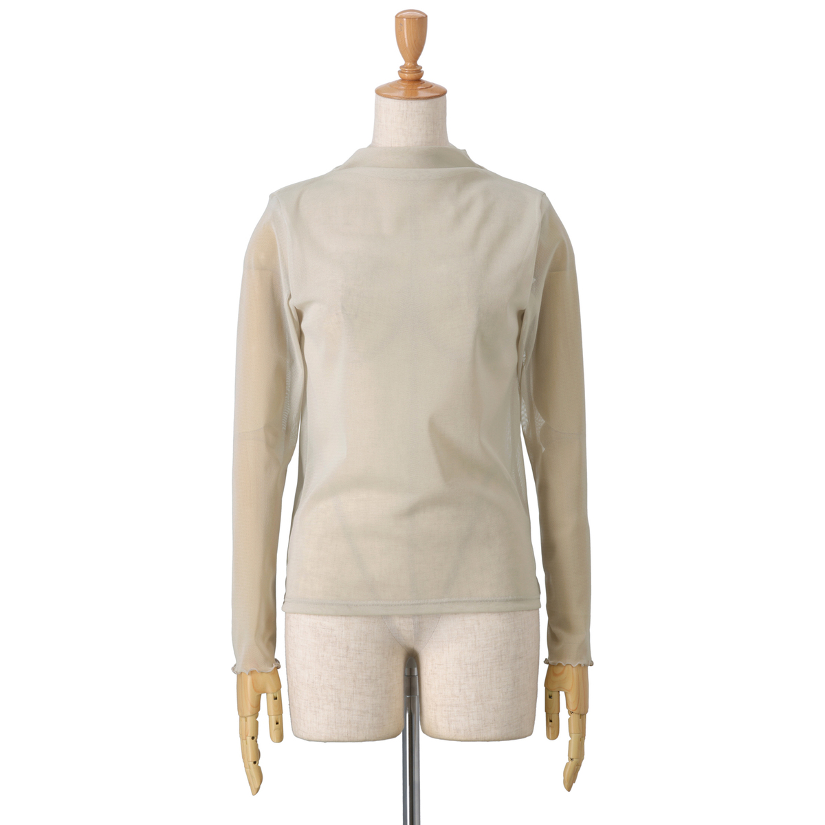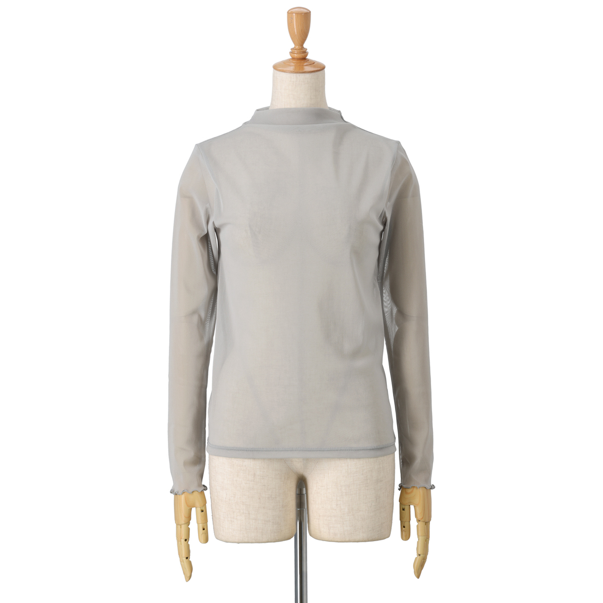東レのサモーラ糸を使った、軽やかに重ねられるシアートップス。首元に沿うボトルネックは生地を折り返したデザインです。縫い目には伸度のあるウーリー糸を用いて突っ張り感を抑え、腕まわりは細身に見えてもゆとりのある設計に。袖丈はやや長めで、メロー仕上げの袖口がレイヤードにも使いやすい日本製の一枚です
