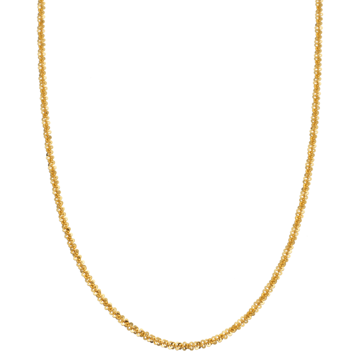 純金ならではの上品な輝きを楽しめるチェーンネックレス。流れるようなきらめきに、ボリュームを持たせつつ繊細さも感じられるデザインです。細やかなダイヤモンドカットを施し、角度ごとに光を受けて多方向へ美しく輝きを放ちます