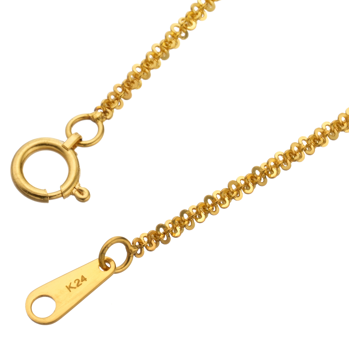[地金] 24Kゴールド 総重量(約) 9.2g 長さ(約) 80.0cm 幅(約) 1.8mm チェーンの形状 デザイン 留具の形状 引き輪 アジャスターの有無 無 留め具の受け側 最大幅×高さ 3.5×3.3mm ■受注発注商品のためデザイン・価値に影響のない範囲で仕様が変わる場合がございます ■素材の大きさ・形・色合い、製品のサイズは1点1点多少異なります 【本体・プレート:中国製、引き輪:日本製】