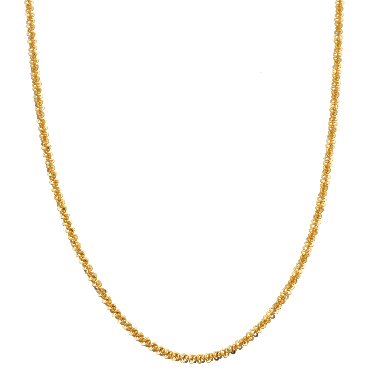 純金ならではの上品な輝きを楽しめるチェーンネックレス。流れるようなきらめきに、ボリュームを持たせつつ繊細さも感じられるデザインです。細やかなダイヤモンドカットを施し、角度ごとに光を受けて多方向へ美しく輝きを放ちます