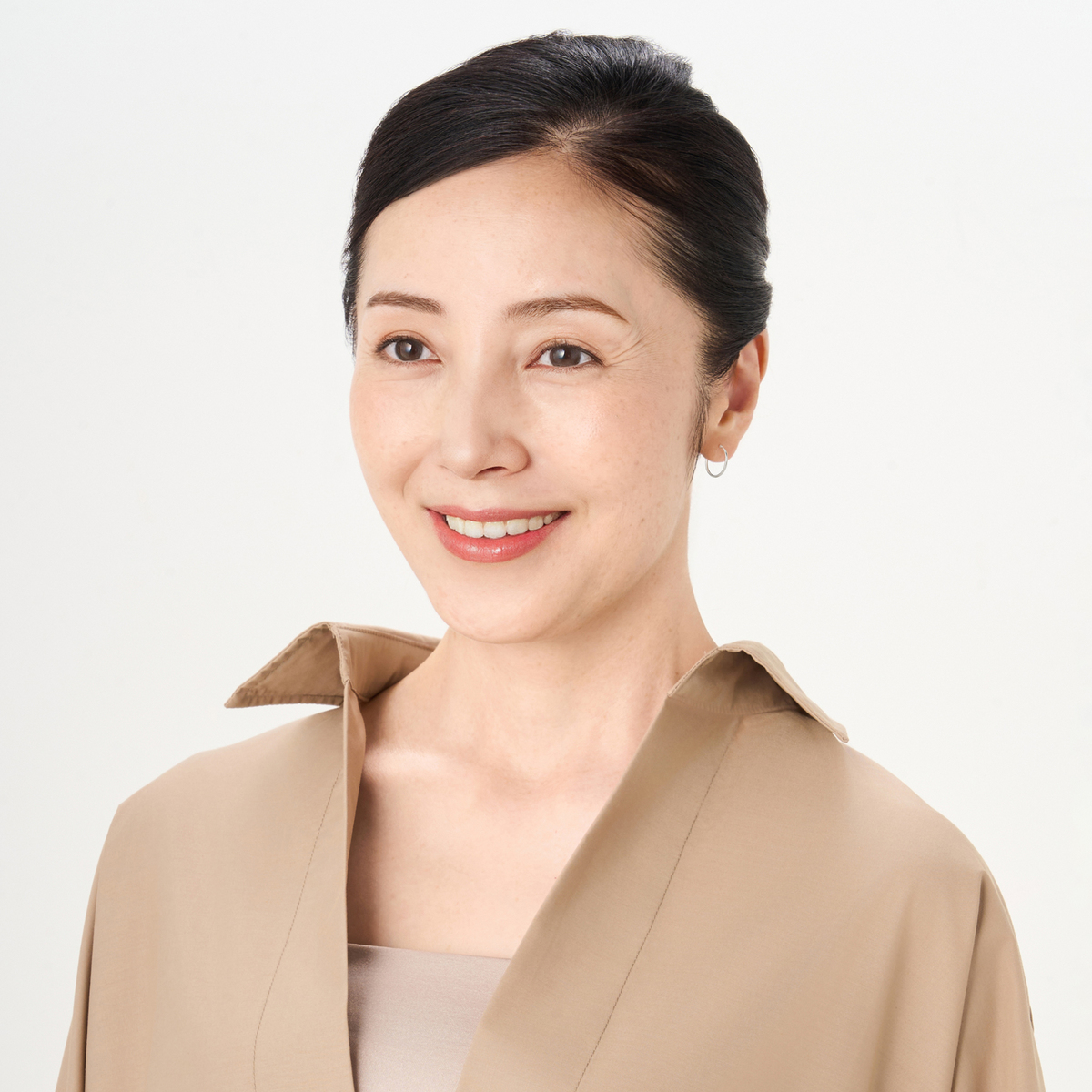 定番のシンプルなフープイヤリングまたはピアス。普段使いに重宝するアイテムで、顔周りにさりげなく大人の洗練をプラスします
