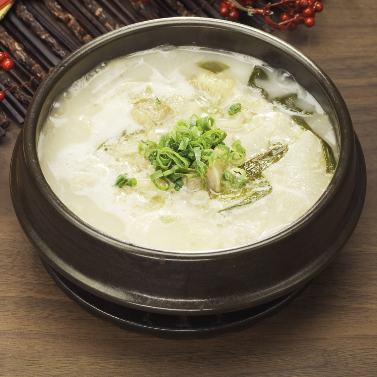 牛肉(アメリカ産)、大根(国産)、韓国もち(うるち米(アメリカ産)、食塩)、牛骨スープ(畜肉エキス、還元水あめ、食塩、その他)、小葱、牛肉風味調味料、胡椒/調味料(アミノ酸等)、酸味料、トレハロース、カラメル色素、増粘剤(キサンタンガム)、チアミン、乳化剤、ポリリン酸Na、香料、(一部に小麦・乳成分・大豆・牛肉・鶏肉・ゼラチンを含む)