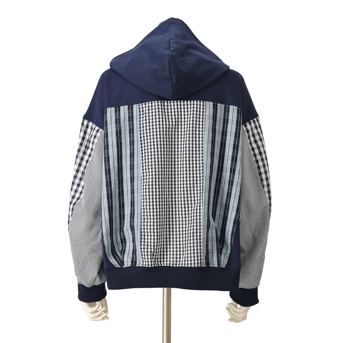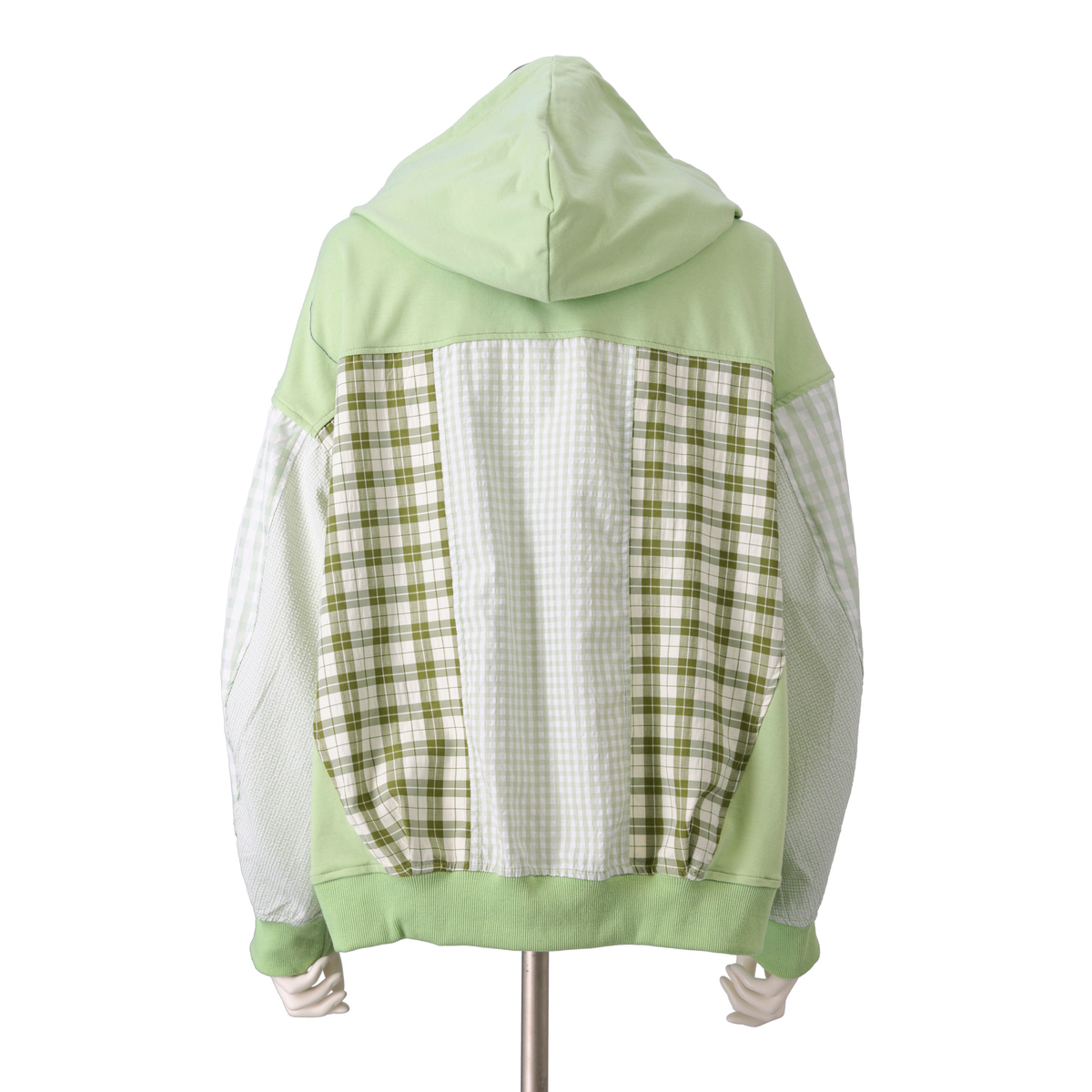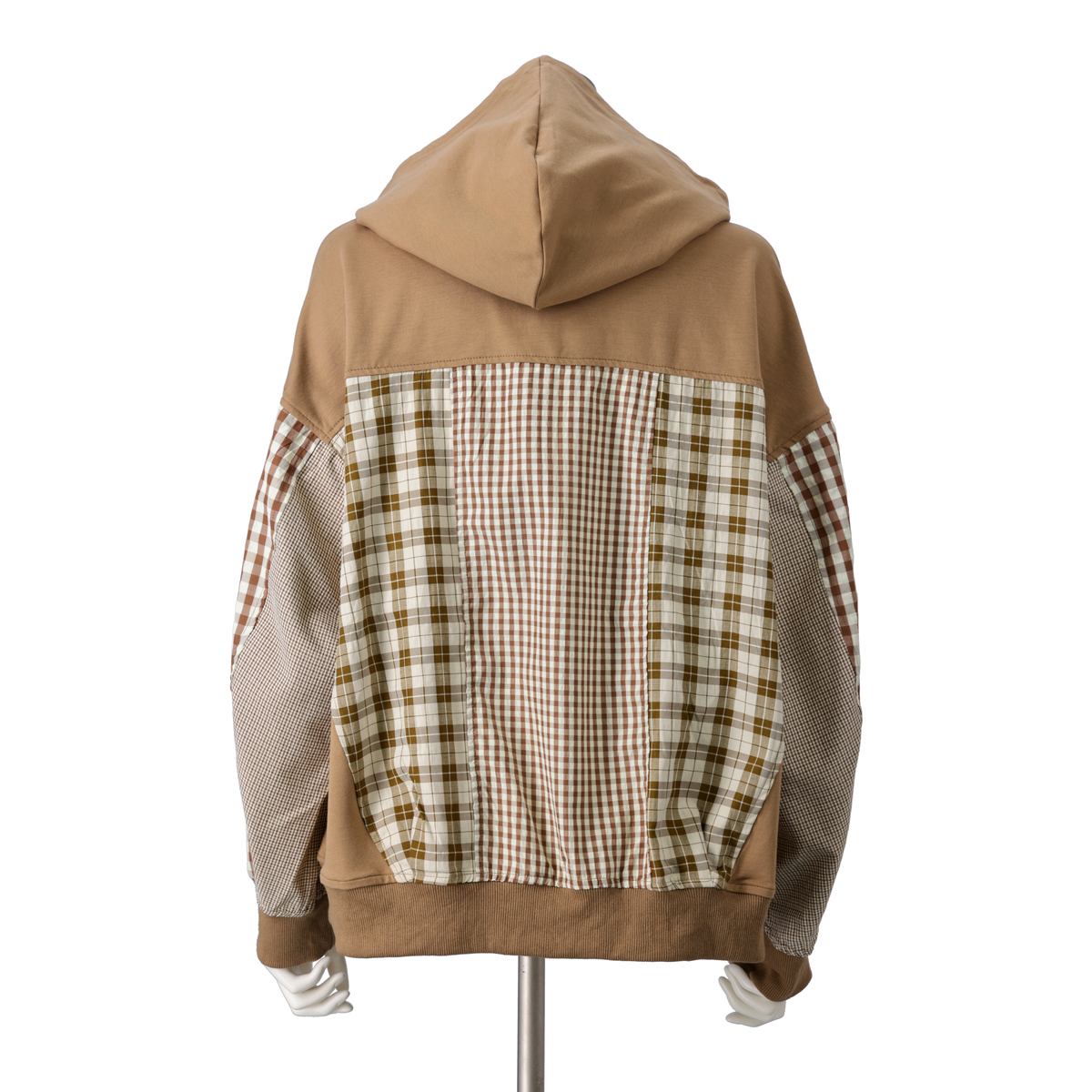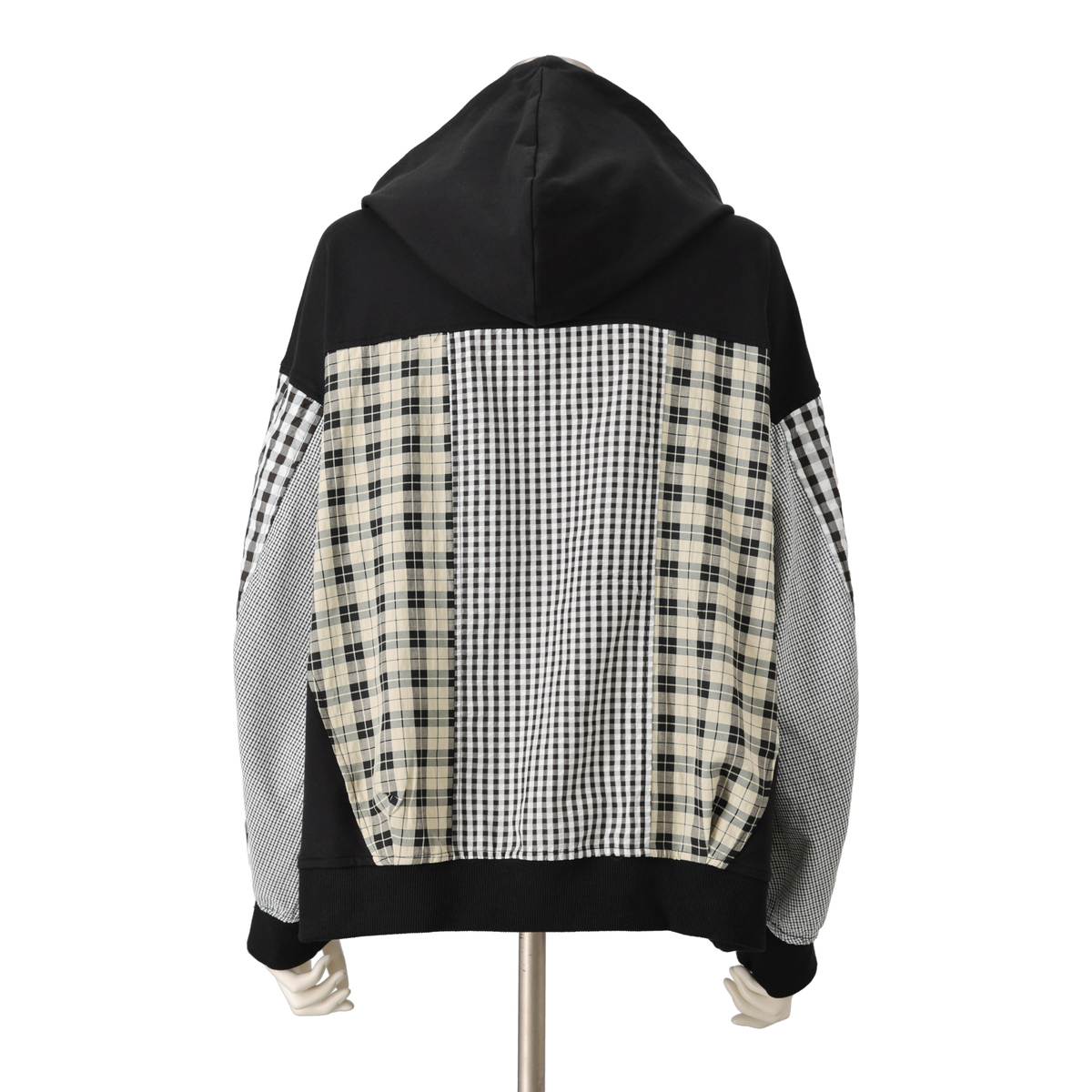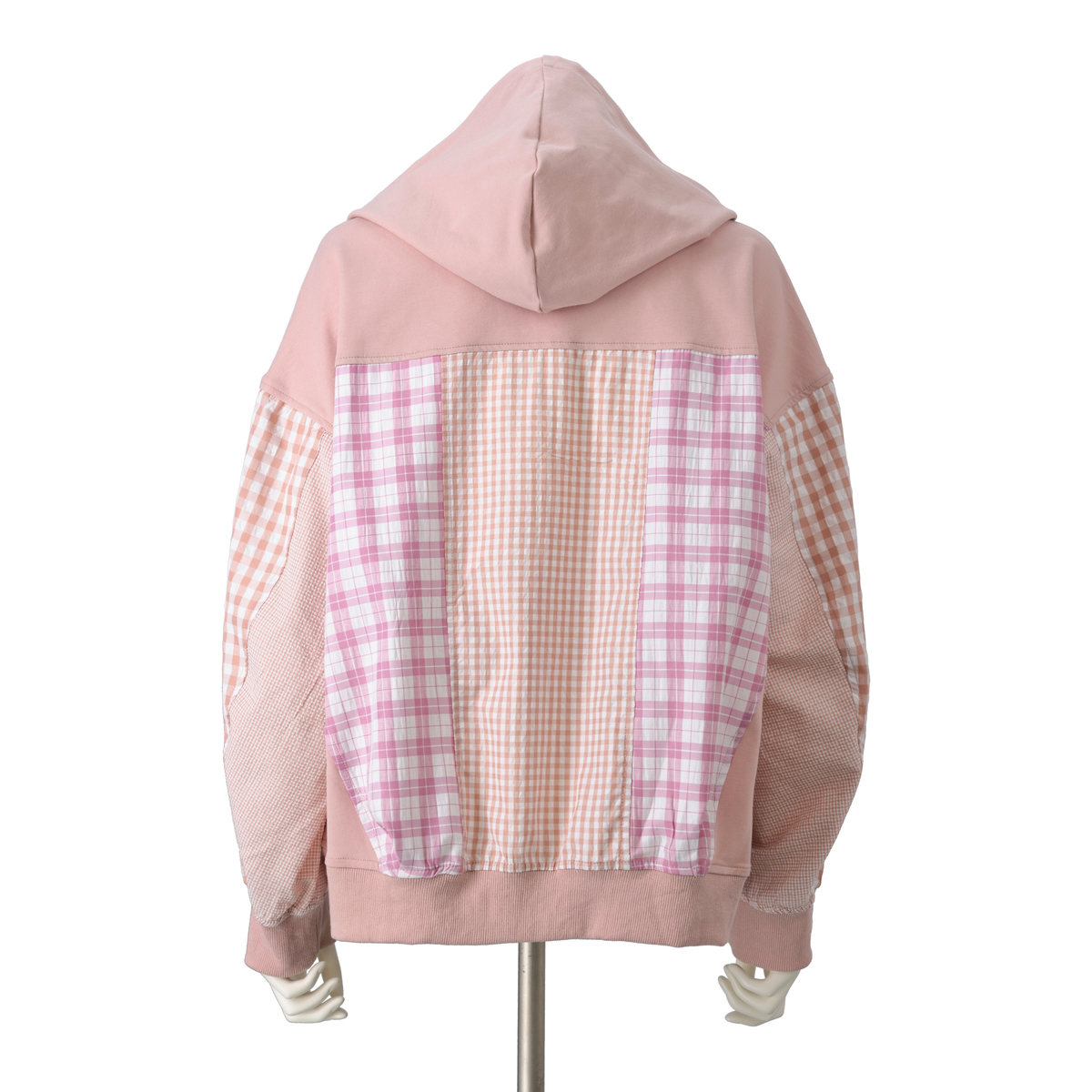 異素材の組合せが目を引くブルゾン。裏毛素材に大小さまざまなチェック生地を合わせ、軽やかな着心地に仕上げています。同色系でまとめているため着こなしやすく、羽織るだけでコーデにほどよい華やかさをプラス。薄手で扱いやすく、季節の変わりめにも活躍します