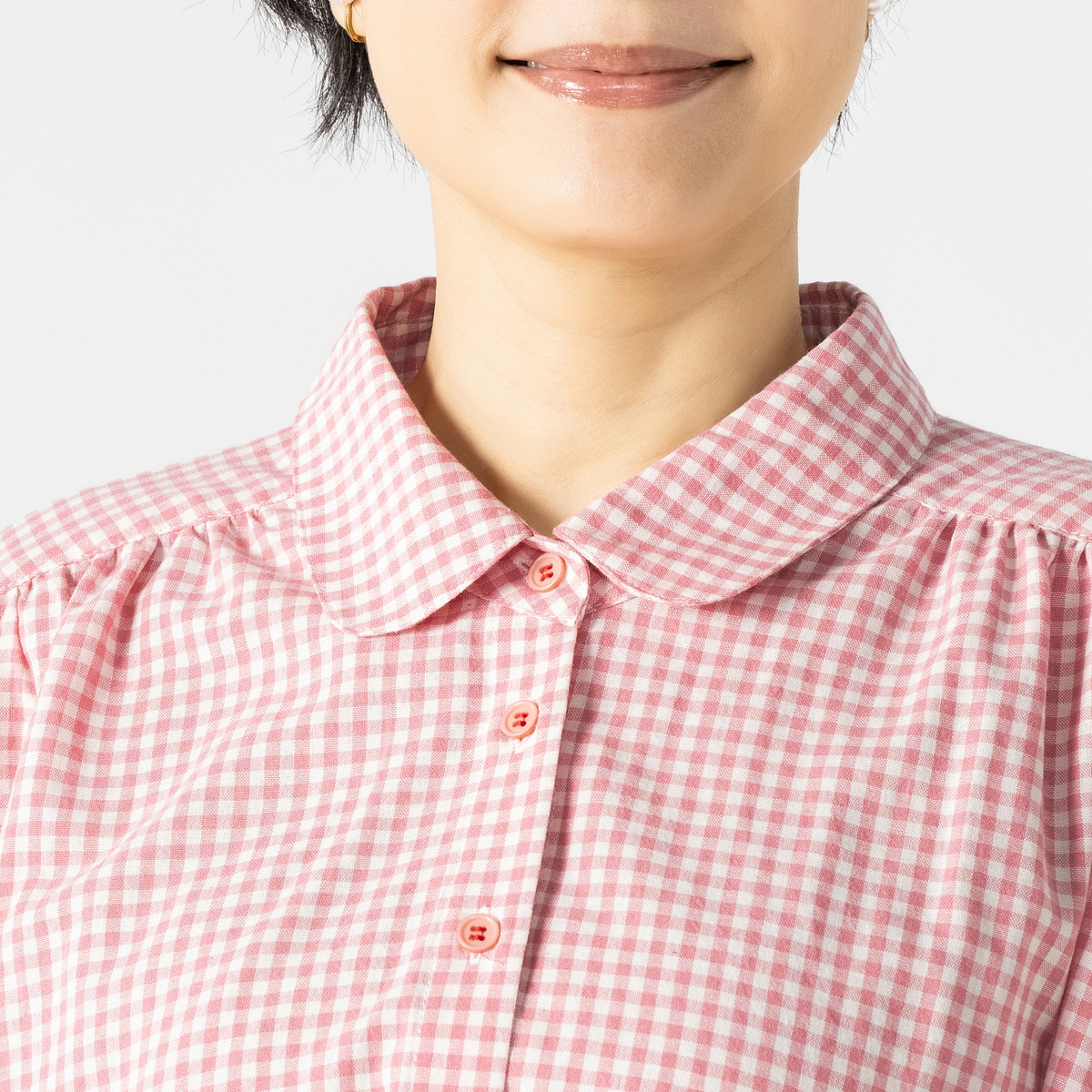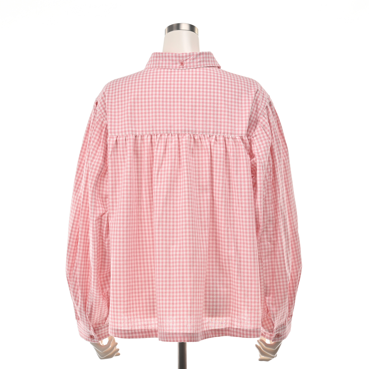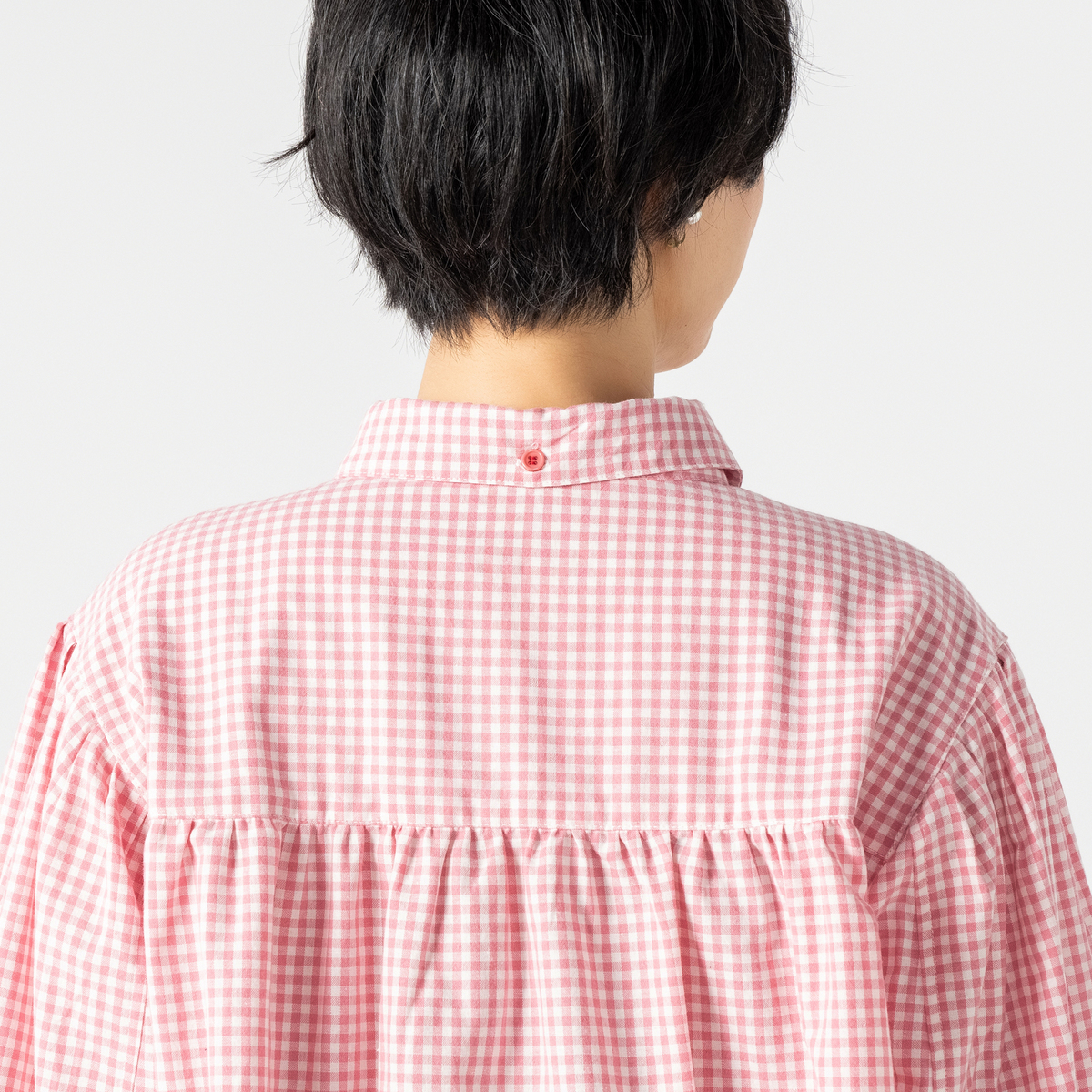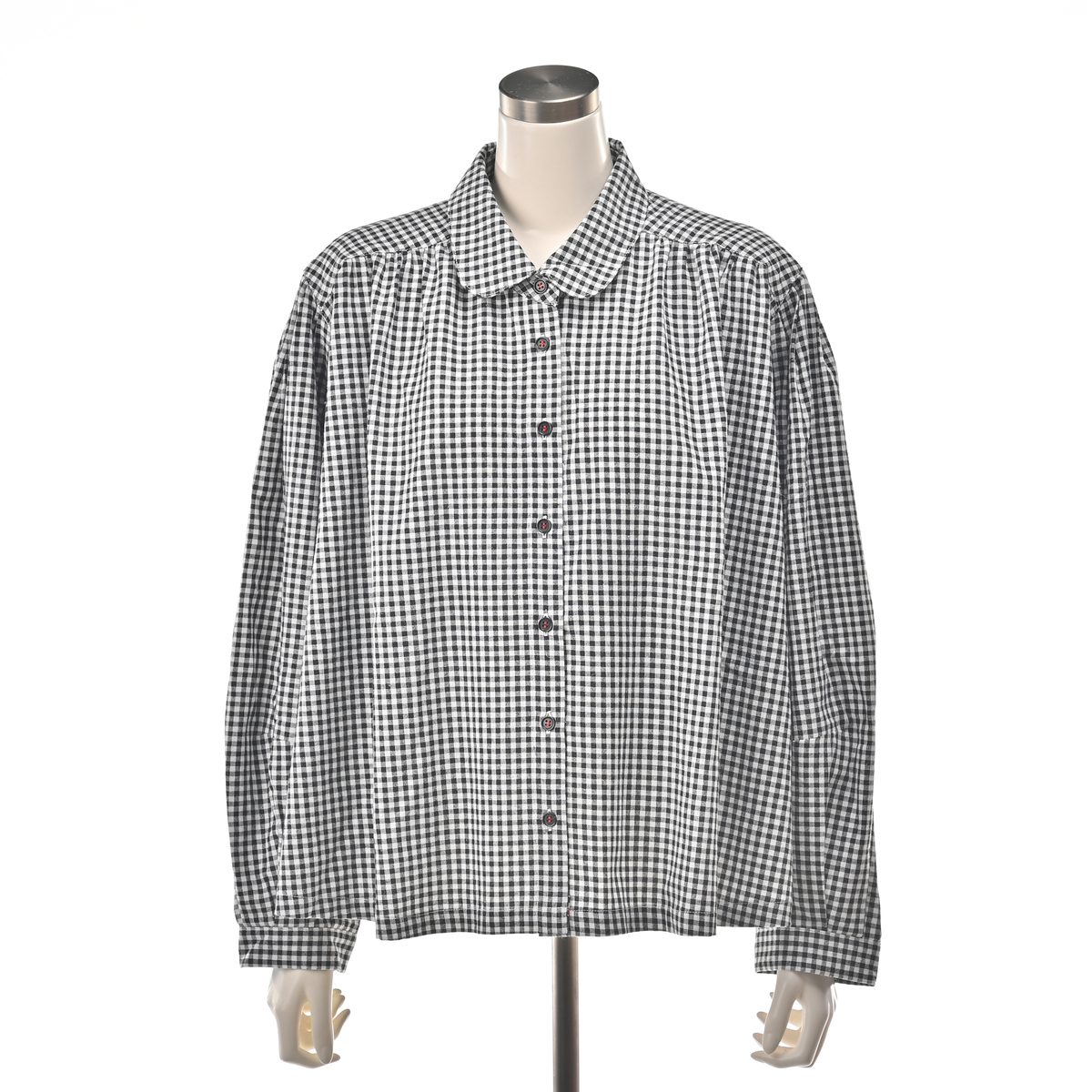 丸みのある袖が印象的なギンガムチェックブラウス。身頃と袖にギャザーをたっぷり入れ、ふんわりとしたシルエットを楽しめます。ゆったりした着心地でレイヤードにも取り入れやすく、季節問わず活躍。衿や裾を少しのぞかせる組合せにもマッチし、コーディネートの幅が広がります