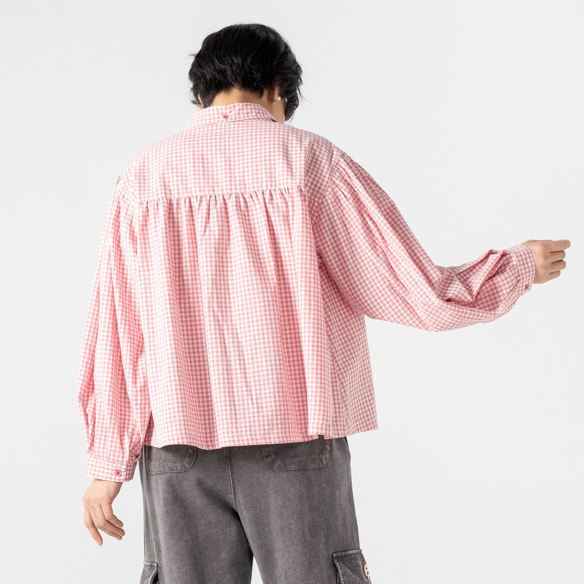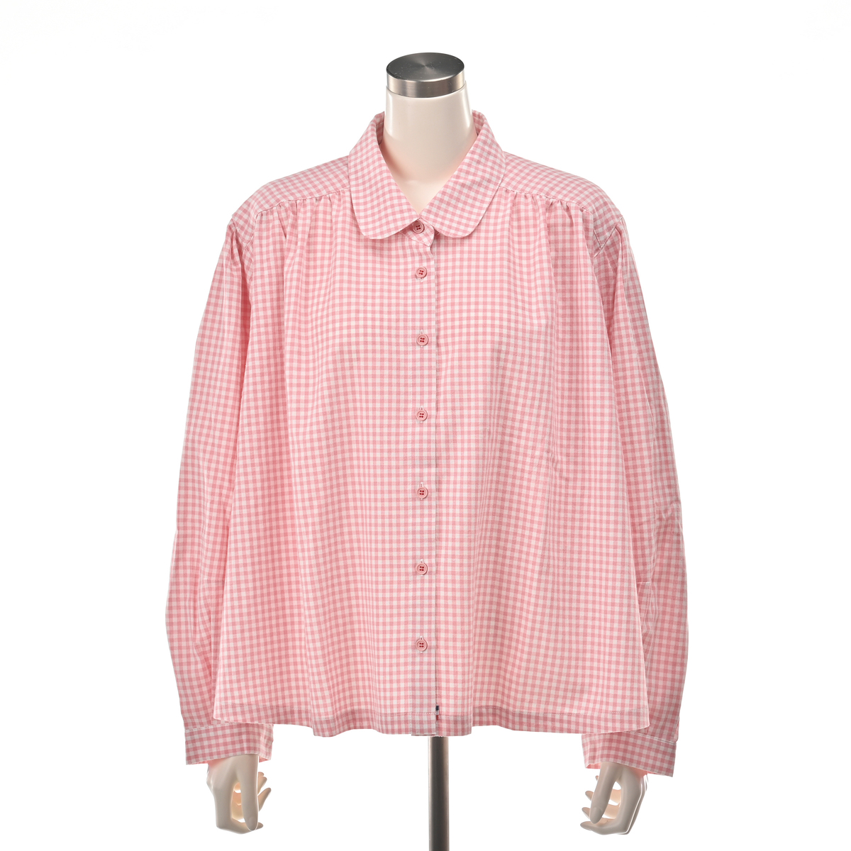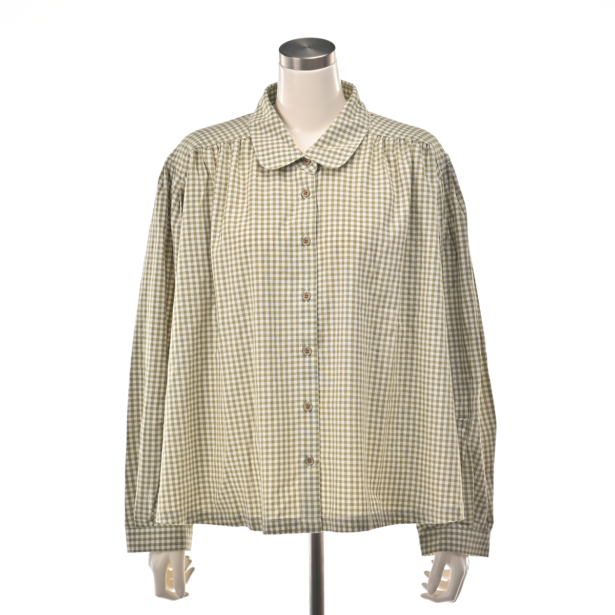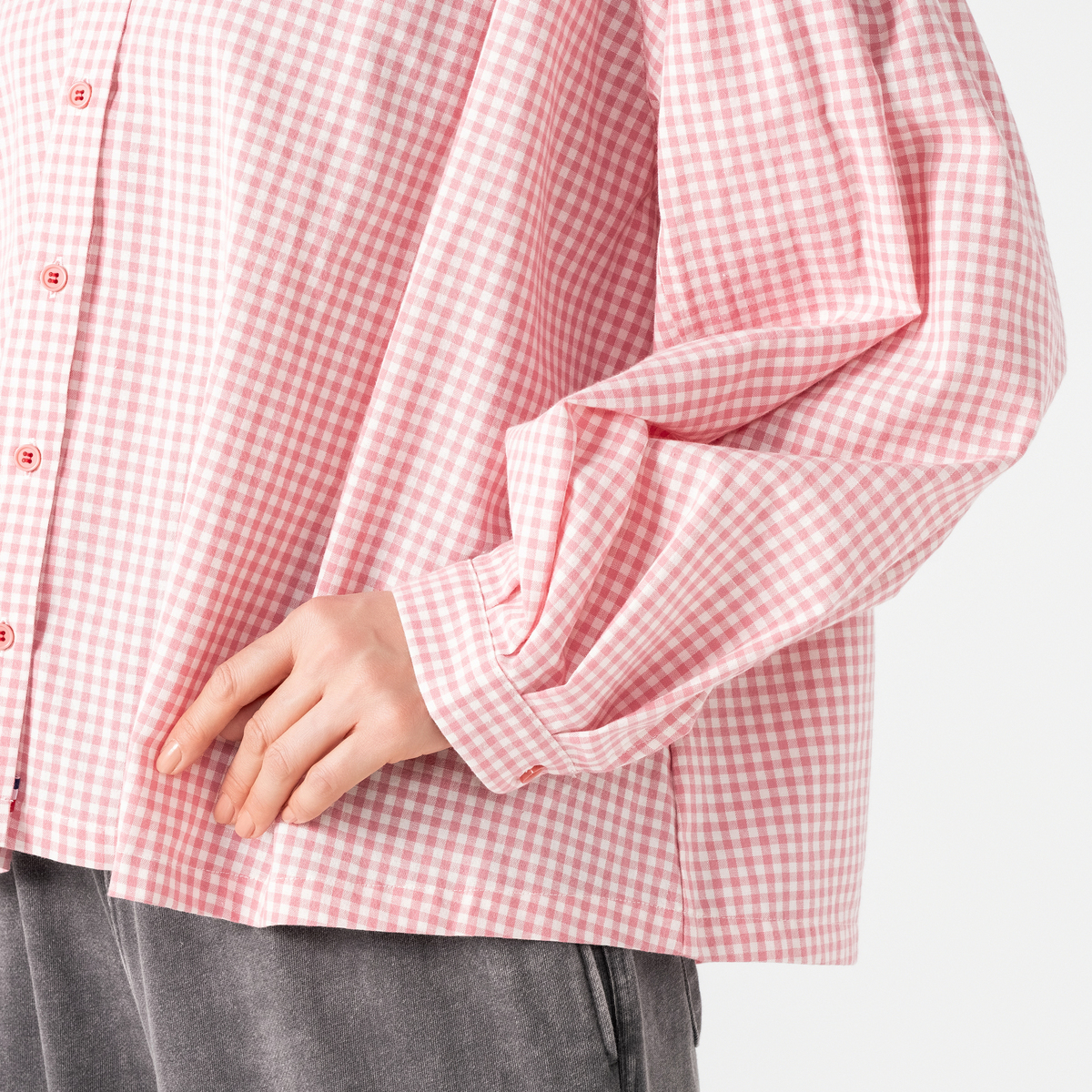 丸みのある袖が印象的なギンガムチェックブラウス。身頃と袖にギャザーをたっぷり入れ、ふんわりとしたシルエットを楽しめます。ゆったりした着心地でレイヤードにも取り入れやすく、季節問わず活躍。衿や裾を少しのぞかせる組合せにもマッチし、コーディネートの幅が広がります