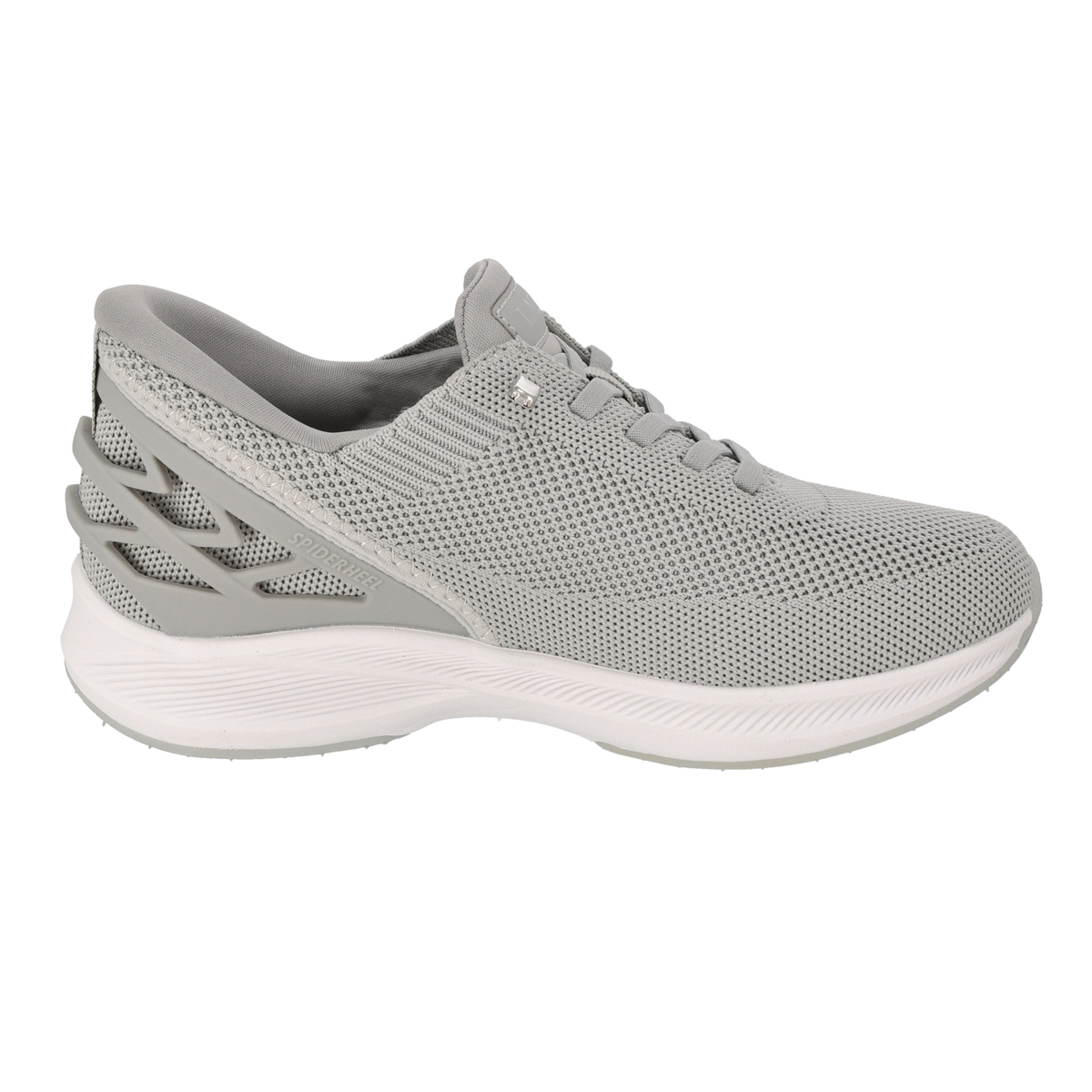 かかと部分に弾力性のある素材を使用。足を入れる瞬間は沈み込み、履いたあとは立ち上がるような特殊構造で、立ったままスムーズに着脱できます。アッパーは軽量なニット素材で片足約250g(23.0cm)に。足全体を包み込むようにフィットします