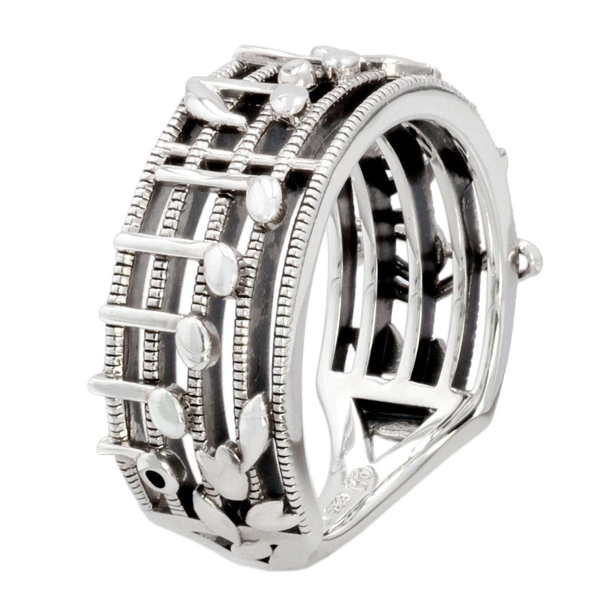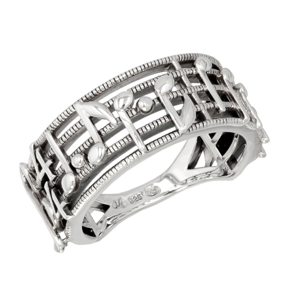 シンフォニーをテーマにした楽譜リング。五線譜の上で音符を踊るようにデザインし、音楽の楽しさや美しさを表現しました