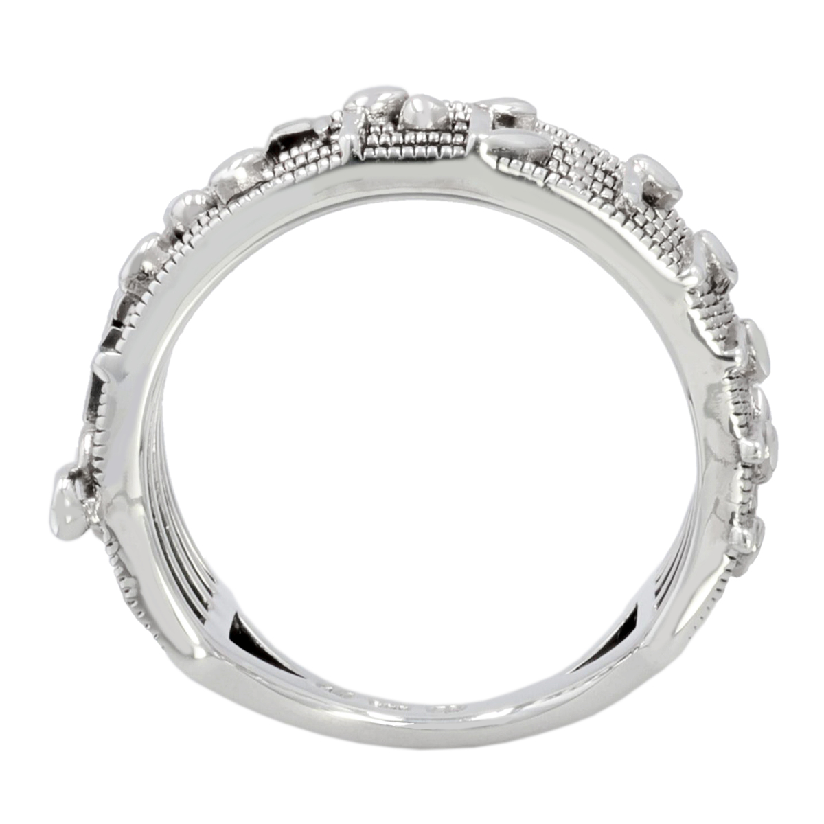 落ち着いた輝きを放ついぶし仕上げのシルバーに、クラシカルな彫り模様やミル打ちを施しました