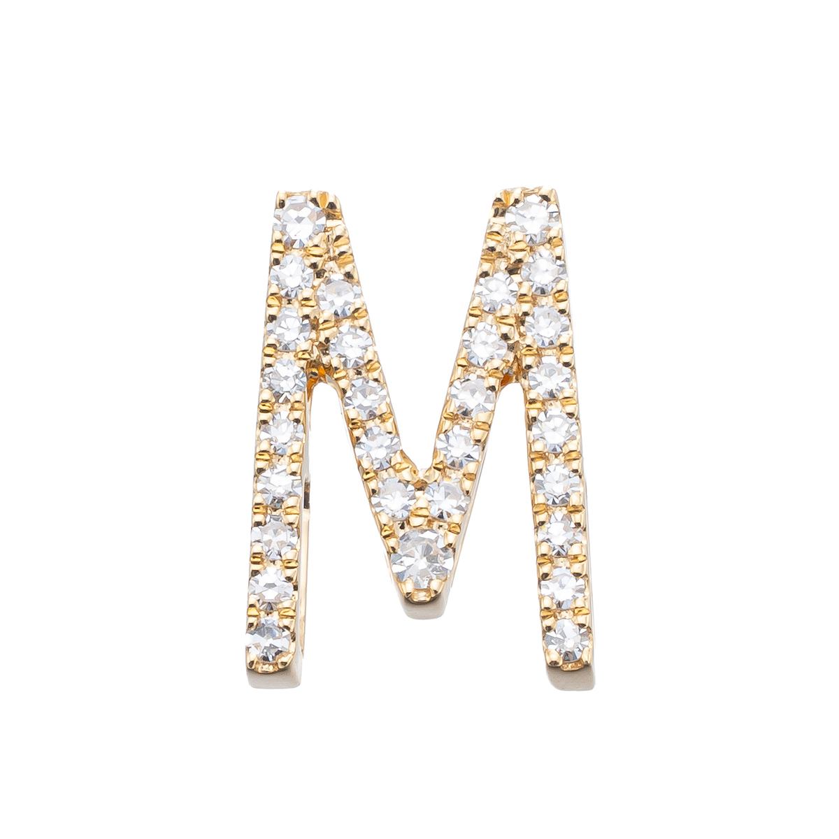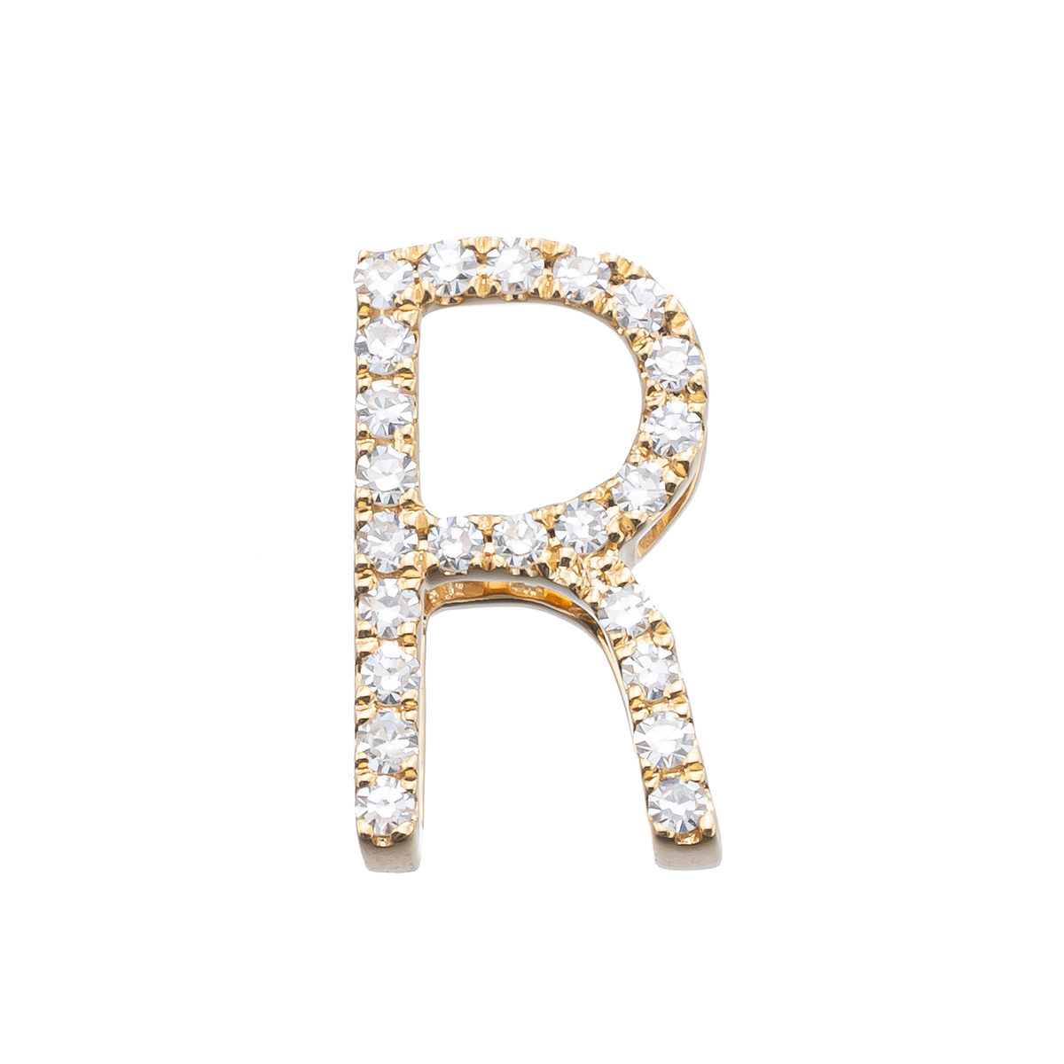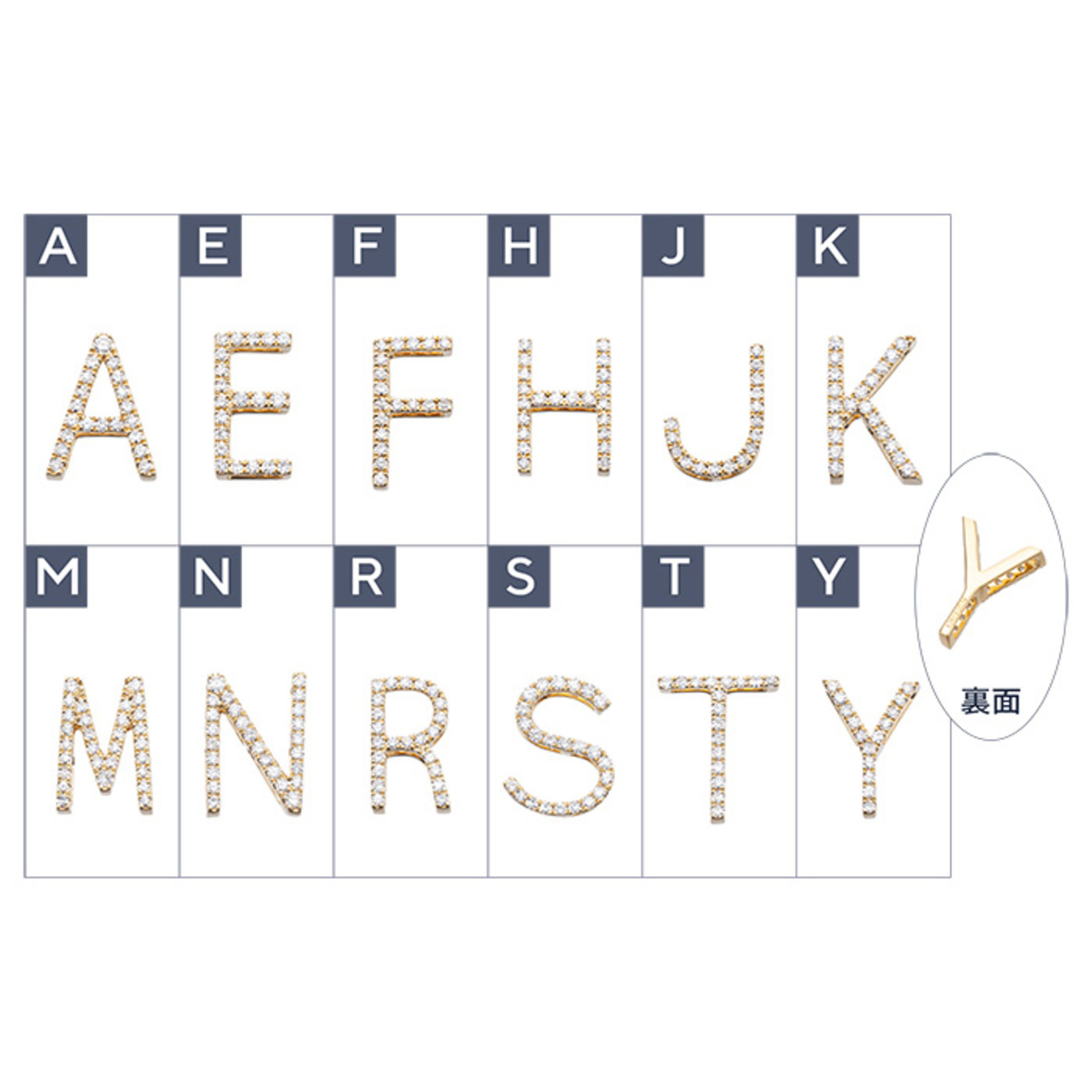 イニシャルの全面にラウンドシェイプのダイヤモンドをセッティングした、煌めくデザインです。ご自身用はもちろん、大切な方へのプレゼントにも喜ばれるイニシャルジュエリーです