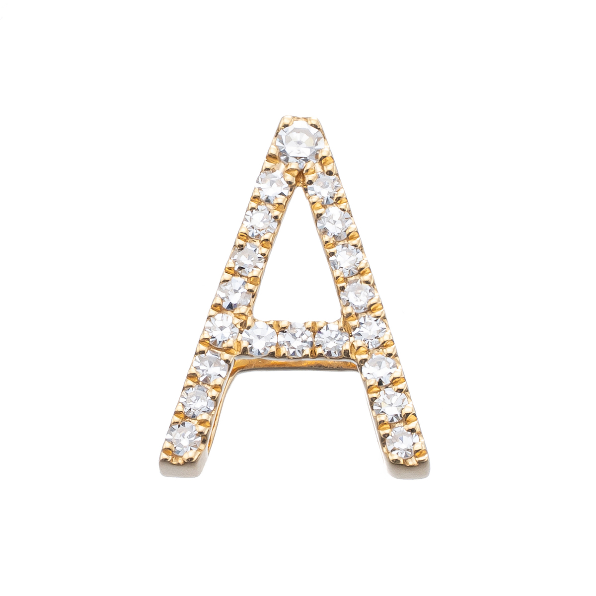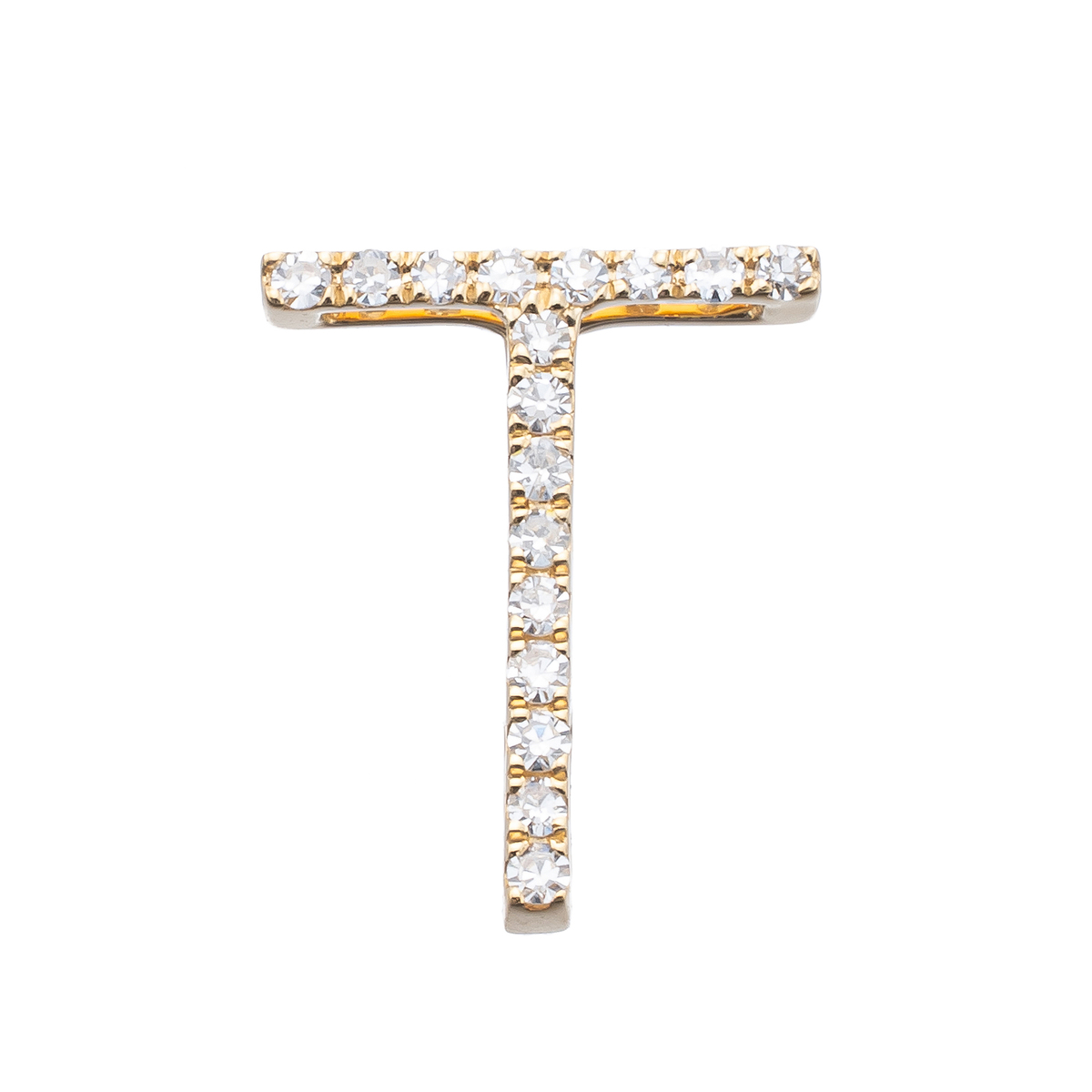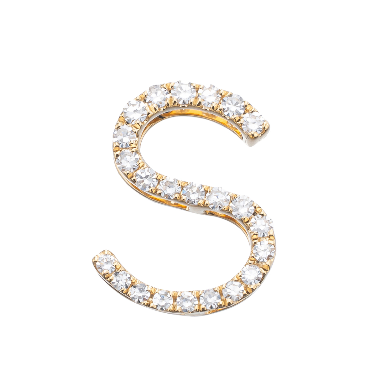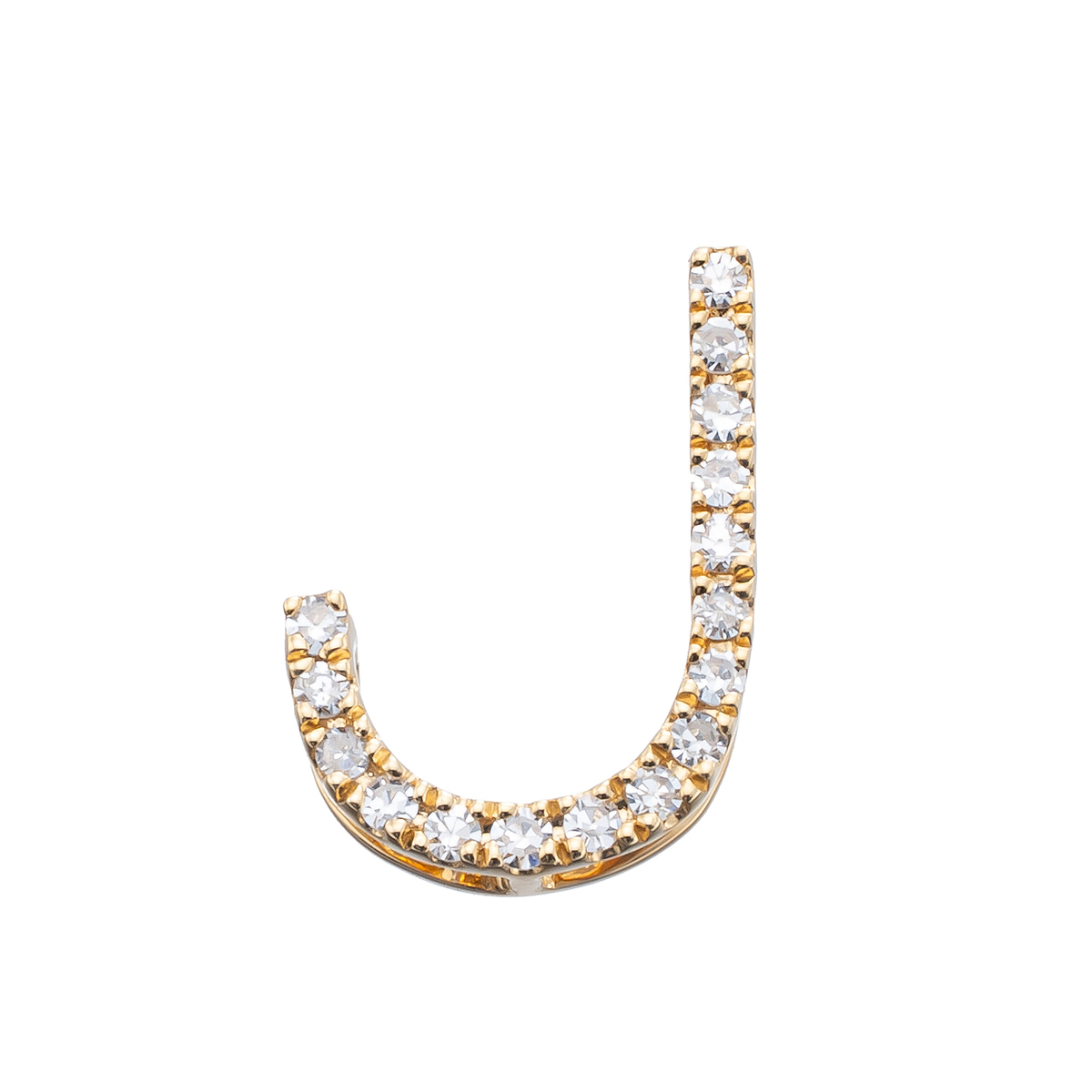 イニシャルの全面にラウンドシェイプのダイヤモンドをセッティングした、煌めくデザインです。ご自身用はもちろん、大切な方へのプレゼントにも喜ばれるイニシャルジュエリーです