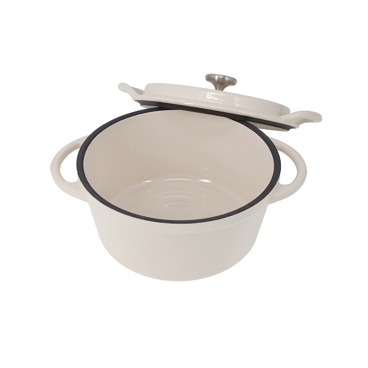 熱伝導と蓄熱性のある鉄鋳物が鍋全体を効率よく温め、食材の芯までじっくり熱を通します。食材から出た水分は鍋底で風味や旨みを含んだ蒸気となり、独自のテーパーエアタイト構造で鍋の中に閉じ込められ、蒸気はフタの流線型形状により対流し、食材の旨みをまとめながら外側からじんわり加熱します
