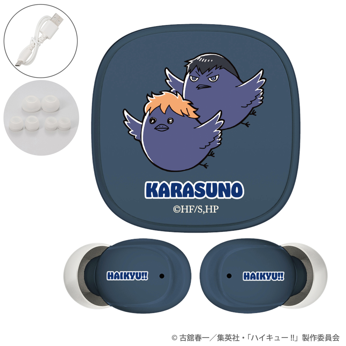 「ハイキュー!!」デザインをあしらった完全ワイヤレスイヤホン。烏野・音駒の2種類から選べ、手のひらに収まるコンパクトサイズです。細部にまでこだわった特別仕様のパッケージが、ファンにはたまらないアイテムです