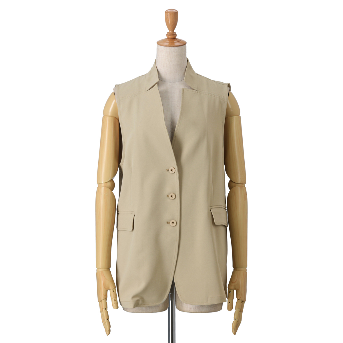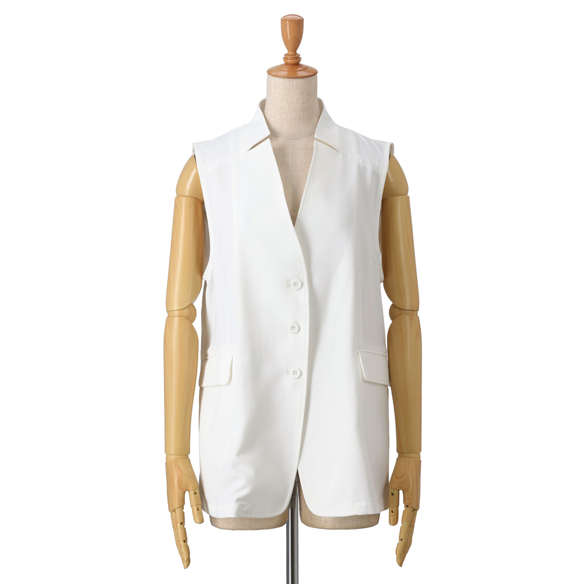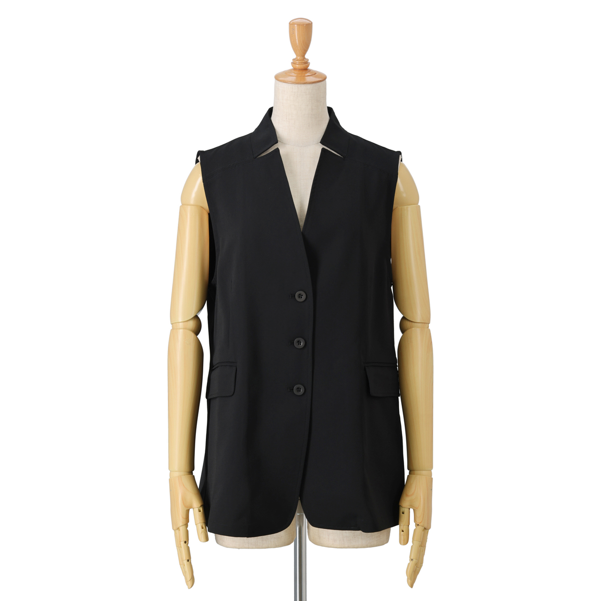 刻み衿のアクセントが都会的な雰囲気を演出するショートジレです。ゆとりを持たせながら、メリハリのあるシルエットに。コーディネートに取り入れるだけで洗練されたスタイルに仕上がります