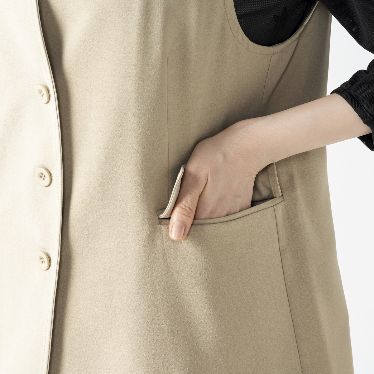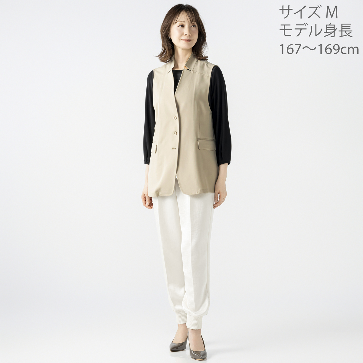 サッと羽織るだけで、マニッシュなデザインがシンプルなトップスやワンピースに新鮮さをプラス。パンツやスカートとも合わせやすく、オンオフ問わず幅広いシーンで活躍します